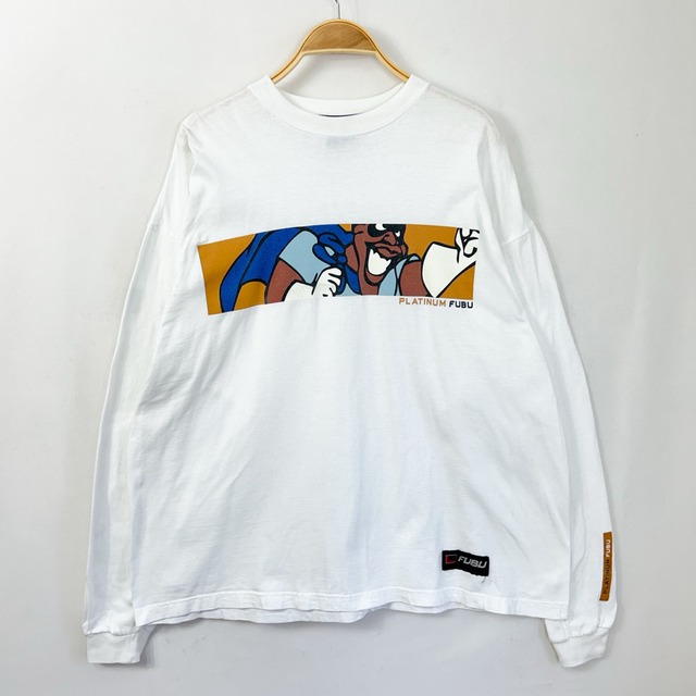 【商品詳細】 PLATINUM FUBU プラチナムフブ プリント 長袖 Tシャツ ロング Tシャツ ロンT 【ブランド】PLATINUM FUBU プラチナムフブ 【素材】コットン100% 【袖丈】長袖 【ドローコードの有無】無し 【色】ホワイト 白 【サイズ】 表記サイズ : XL 着丈 :70 身幅 :63.5 肩幅:63 袖丈 :62.5 【状態】 首元ピンホール数カ所あり。右袖先、プリント部分薄汚れ数カ所あり。 あくまで古着となりますので記載の無い小さな汚れがある場合がございます。画像にてご確認、古着という事をご理解の上、ご購入よろしくお願いします。 【管理番号】S142-7-P11-40819