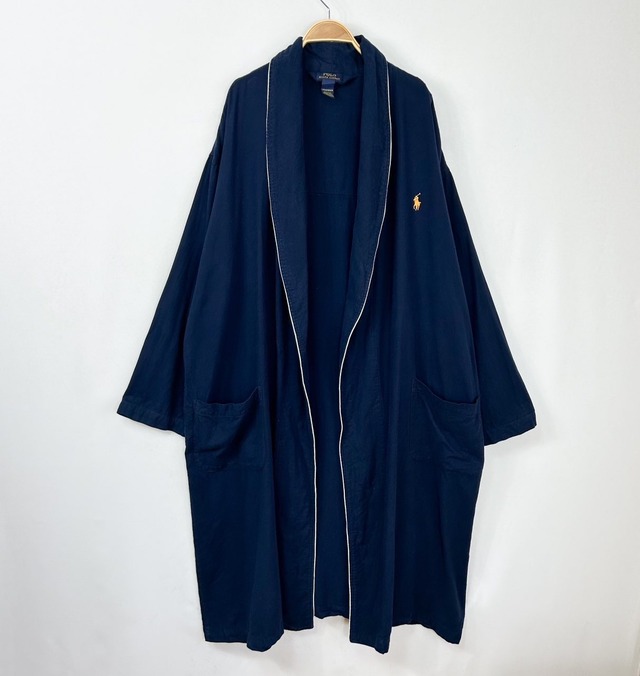 【商品】 POLO Ralph Lauren ポロラルフローレン コットン スリーピングガウン ロングガウンカーディガン コート 【ブランド】POLO Ralph Lauren ポロラルフローレン 【素材】コットン100% 【袖丈】長袖 【ドローコードの有無】無し 【色】ネイビー 紺 【サイズ】 表記サイズ : L/XL 総丈 :126 身幅 :70 肩幅:64 袖丈 :59 【状態】 ベルトループありますが、付属品なし。裾薄汚れ数カ所あり。バック襟擦れで白っぽくなっています。 あくまで古着となりますので記載の無い小さな汚れがある場合がございます。画像にてご確認、古着という事をご理解の上、ご購入よろしくお願いします。 【管理番号】S81-9-VJ3-41109b