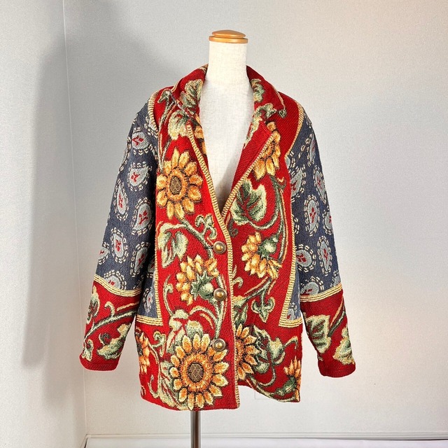 ひまわり ペイズリー柄 メタルボタン ジャガード織 ゴブランジャケット