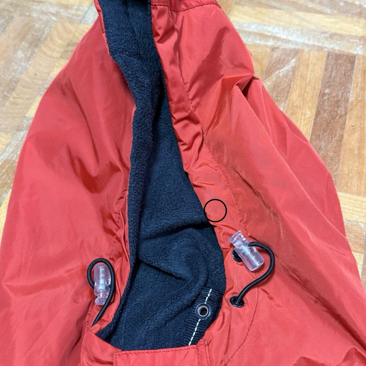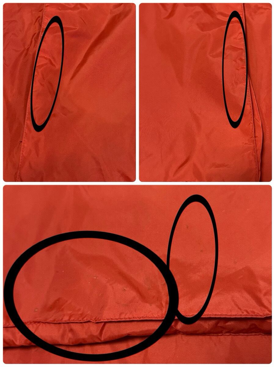 フード、袖、袖先内側、左肩、首元、ポケット、裾薄汚れ数カ所あり。胸のシルバーライン剥げ数カ所あり。