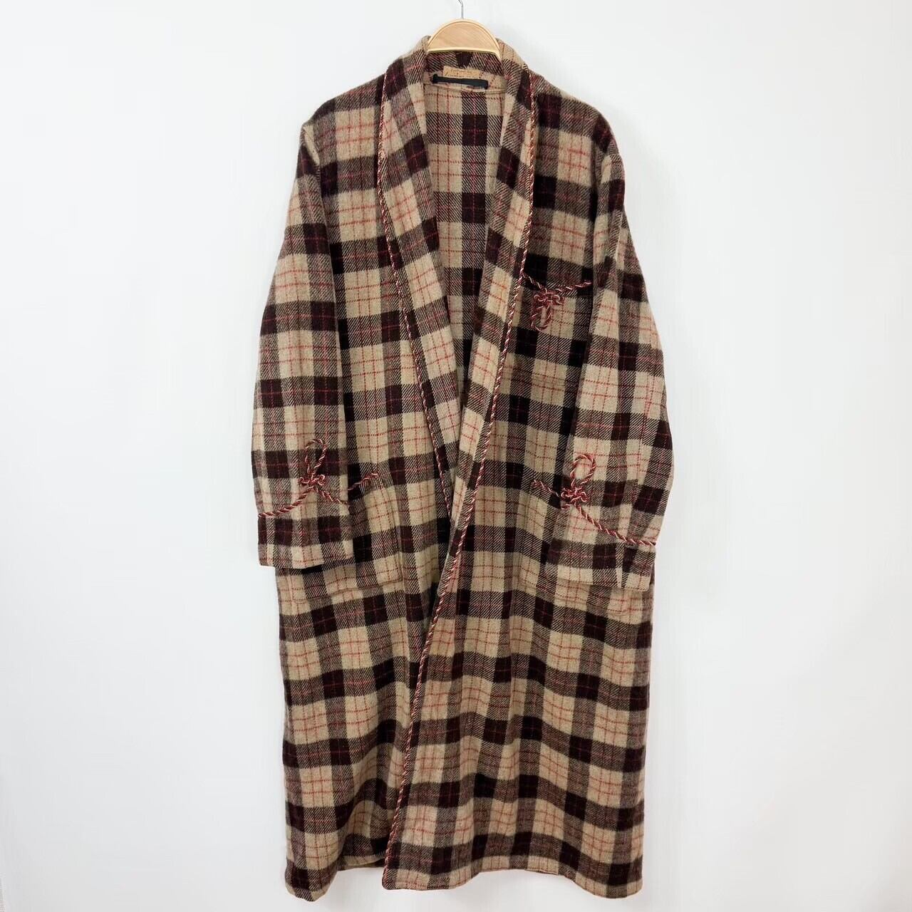 30s 40s vintage Zambrene wool smoking gown coat チェック柄 ウール スモーキングガウン ロングコート