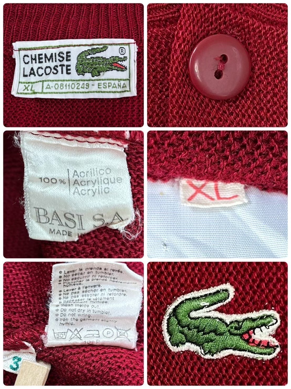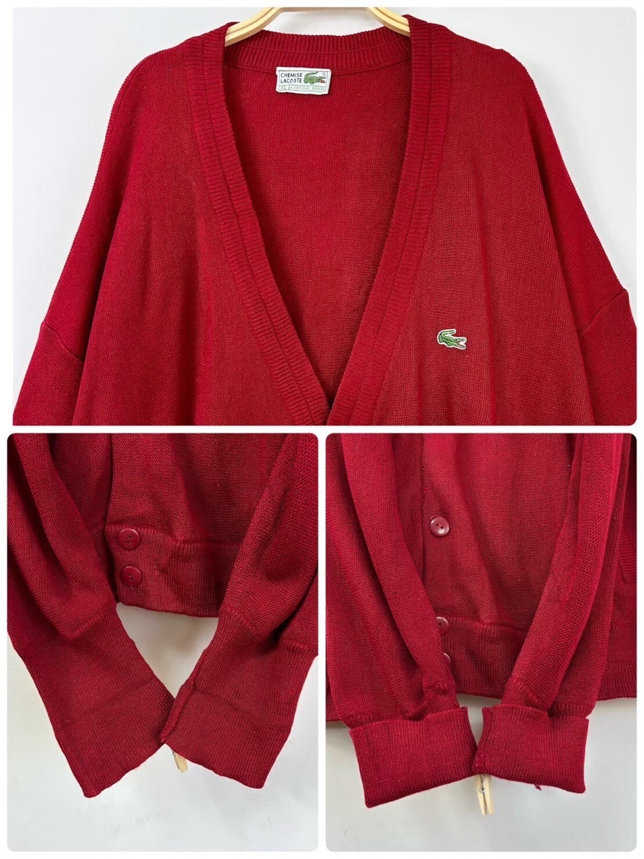 70s 80s made in Spain CHEMISE LACOSTE acryl knit cardigan スペイン製 シュミーズ ラコステ アクリルニットカーディガン