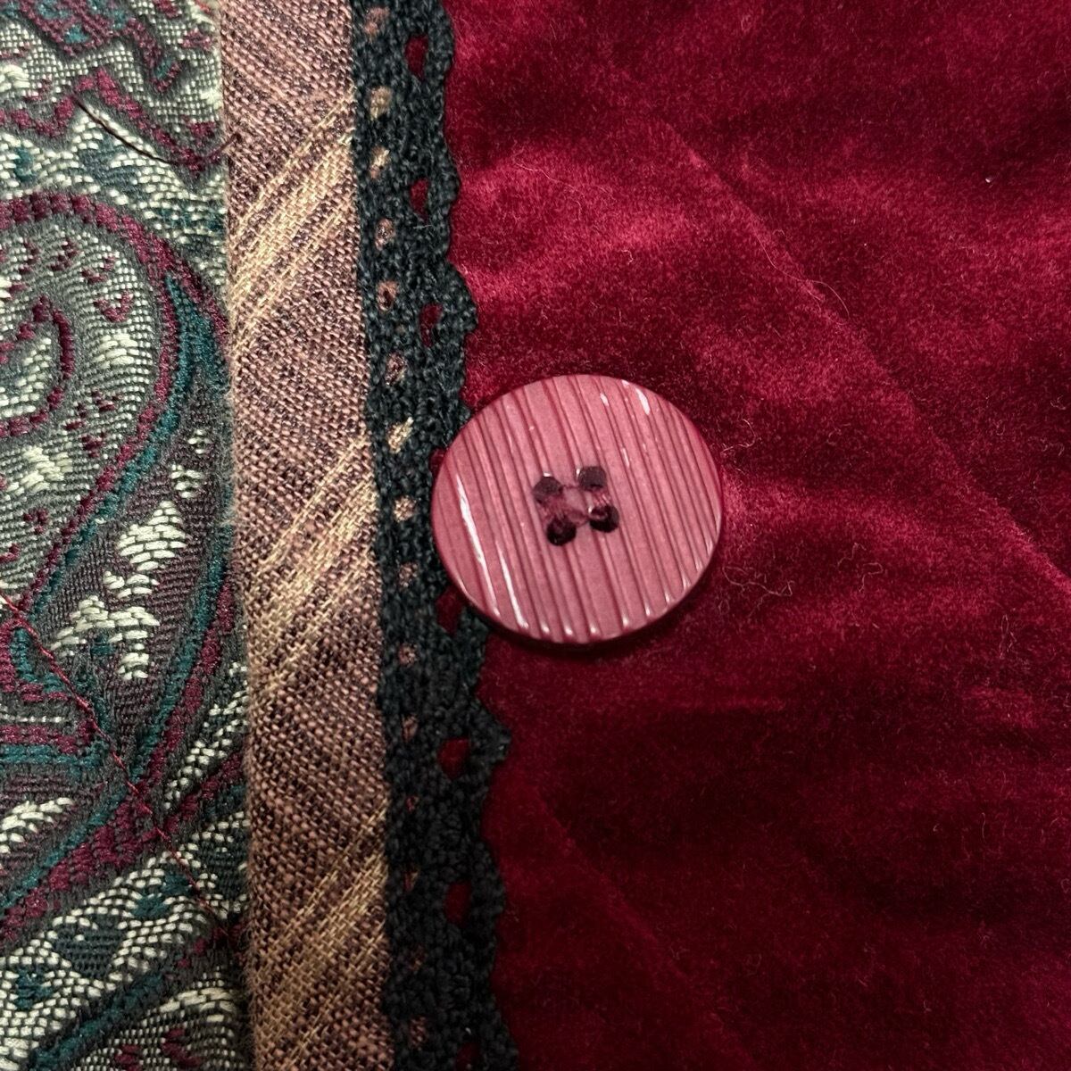 ボルドー:フロント1番下ボタン剥げあり。