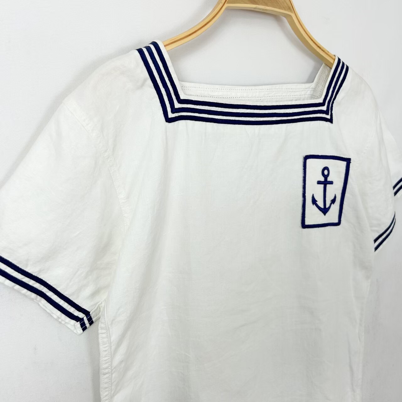 50年代 50s フランス軍 フランス海軍 リネン マリンセーラーシャツ 半袖 トップス ミリタリー シャツ