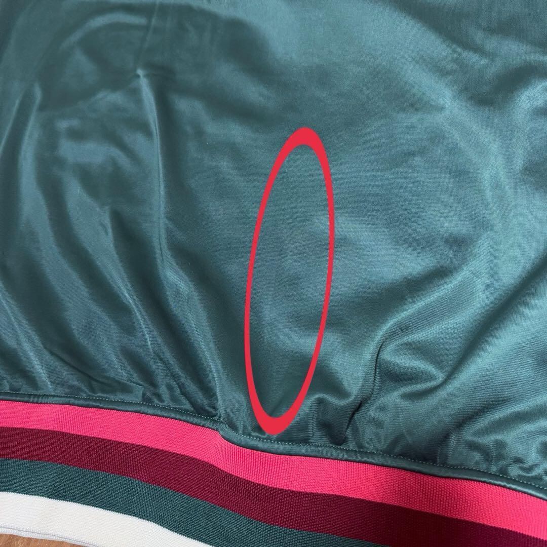 袖、バック左裾上に薄汚れ数カ所あり。右肩生地引けダメージ数カ所あり。左胸、お腹辺り、バック裾上にあたり数カ所あり。