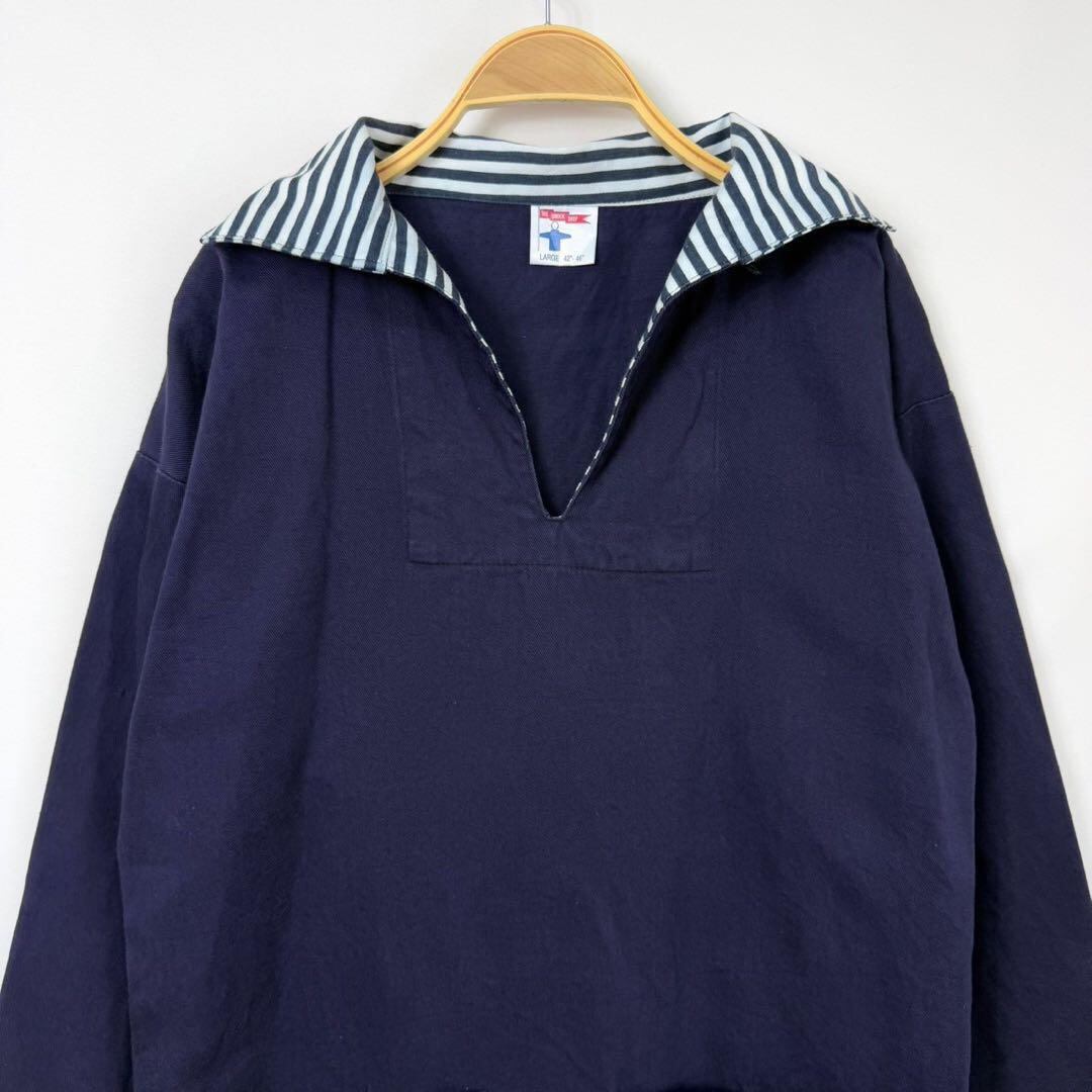 イングランド製 コットンツイル 襟ボーダー 切り替え フィッシャーマンスモック プルオーバー ワークシャツ