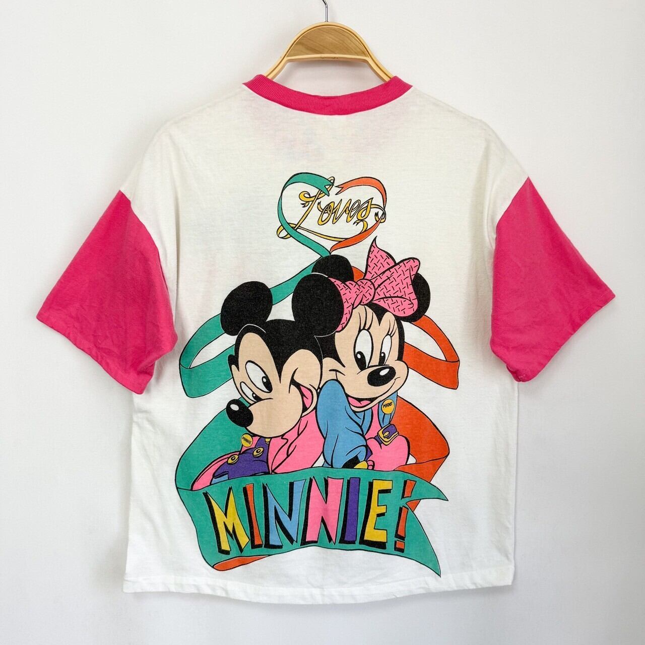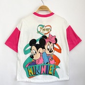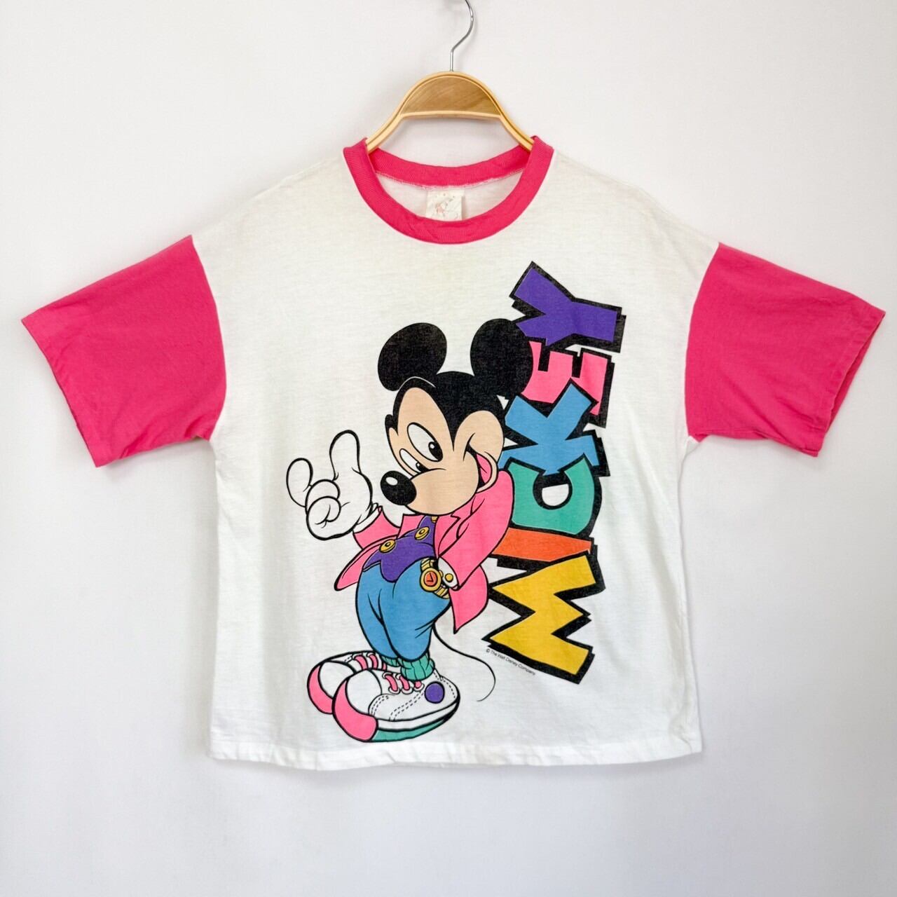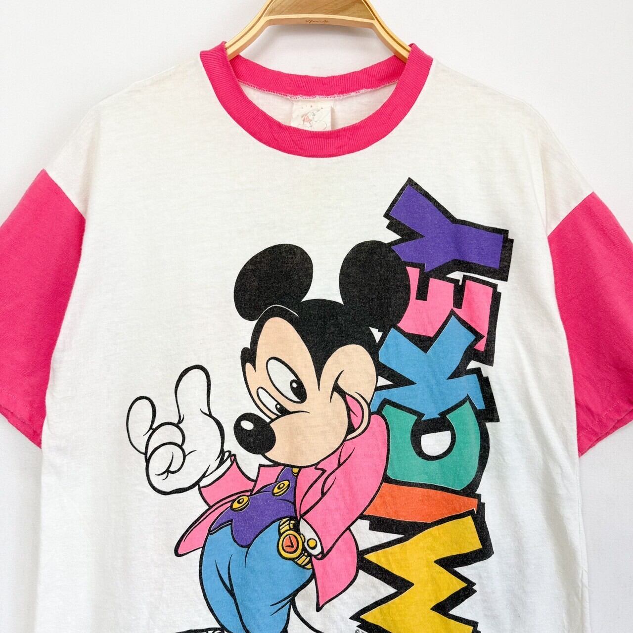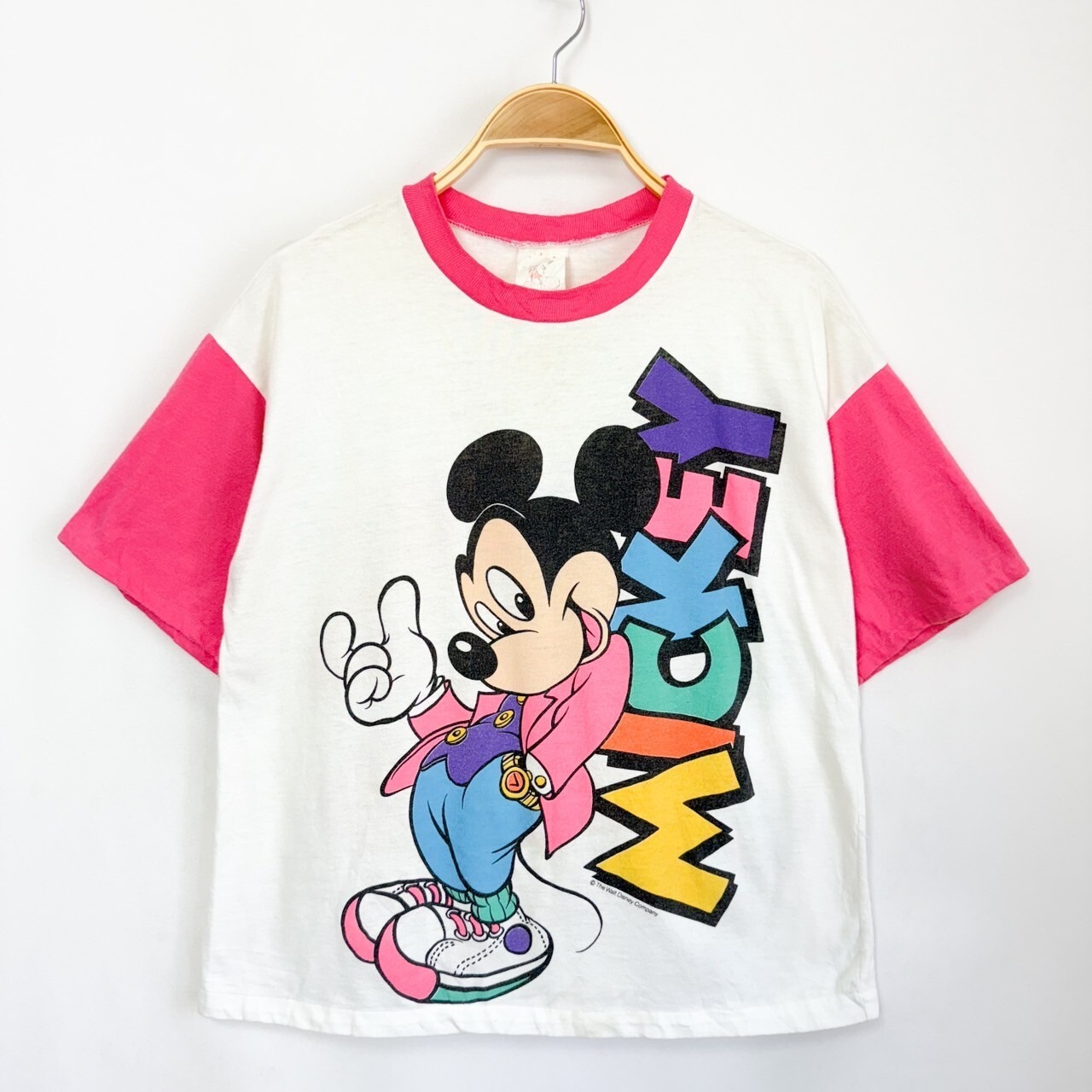 90年代 Disney Mickey ツートンカラー プリント 半袖 Tシャツ