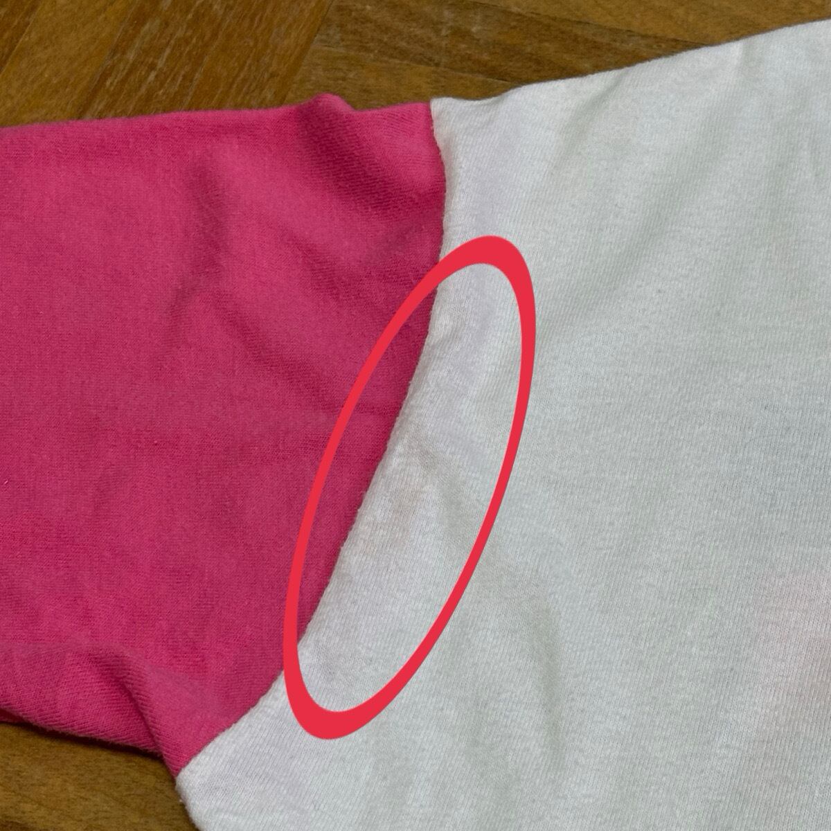 左肩、首元、右胸、お腹、裾、バック左袖付け、バック左袖横辺りに薄汚れ数カ所あり。全体的に若干毛羽立ちあり。
