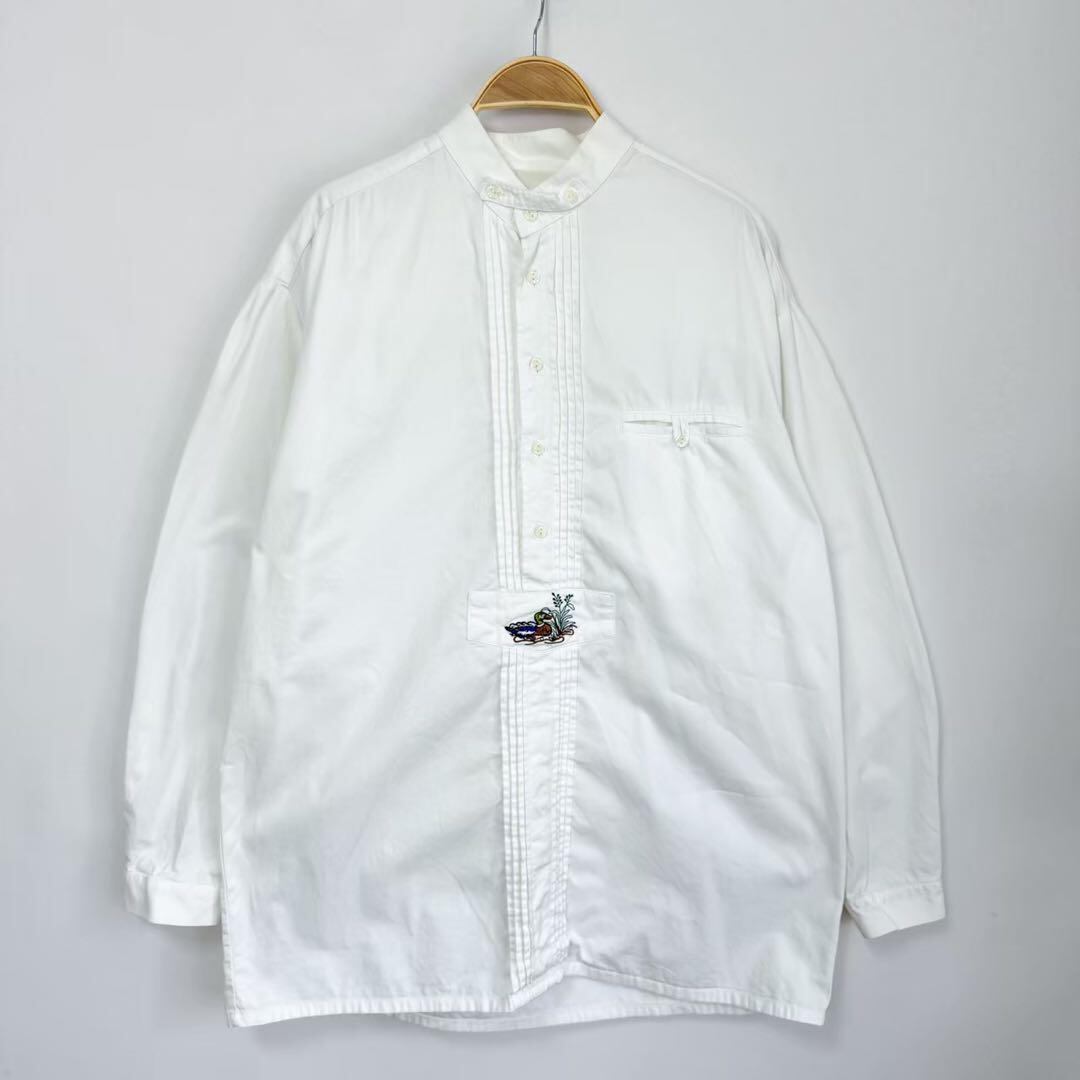 ドイツ製 ユーロ バンドカラー カモ 刺繍 ハーフボタン チロルシャツ