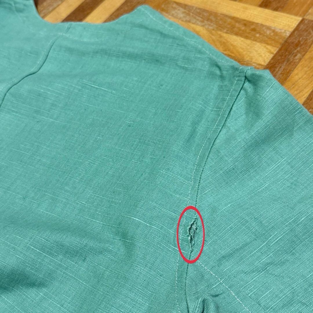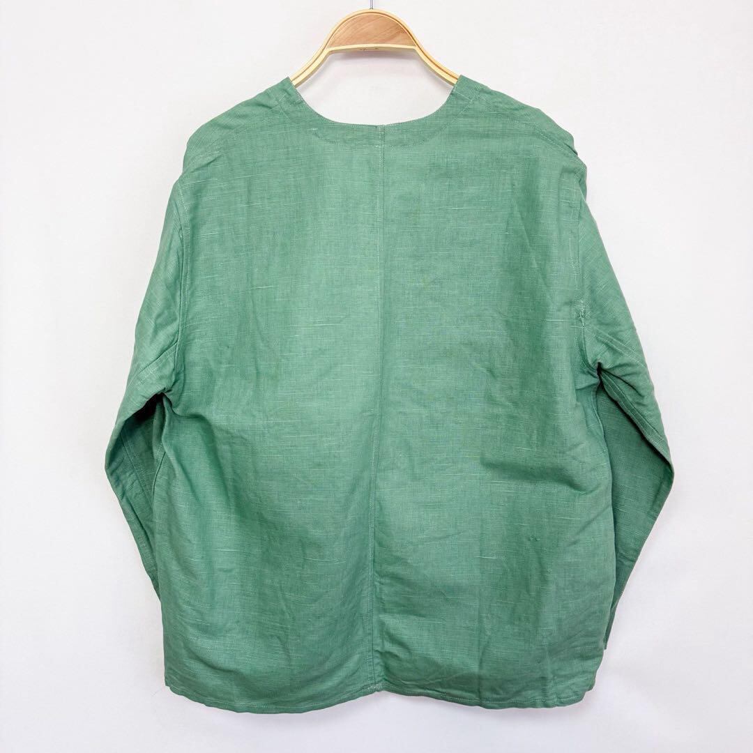 お腹に小さな薄汚れ数カ所あり。生地特有のネップ数カ所あり。バック右袖付け3㎝程度のダメージあり(外側だけのダメージですので解れはなく問題なく着ていただけます)。
