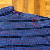 袖先ダメージあり。バック右肩リペア跡あり。袖、襟周り薄汚れ数カ所あり。