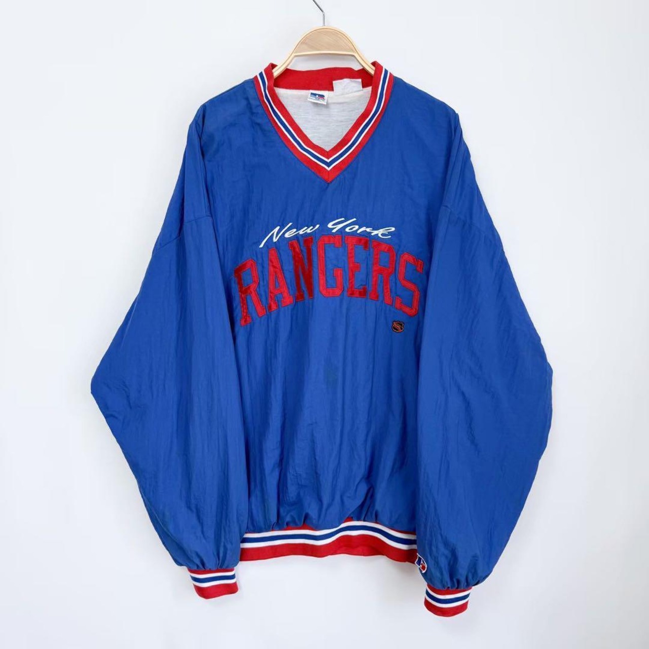 Russell athletic NHL NEW YORK RANGERS ニューヨークレンジャース 刺繍ロゴ プルオーバー ナイロンジャケット