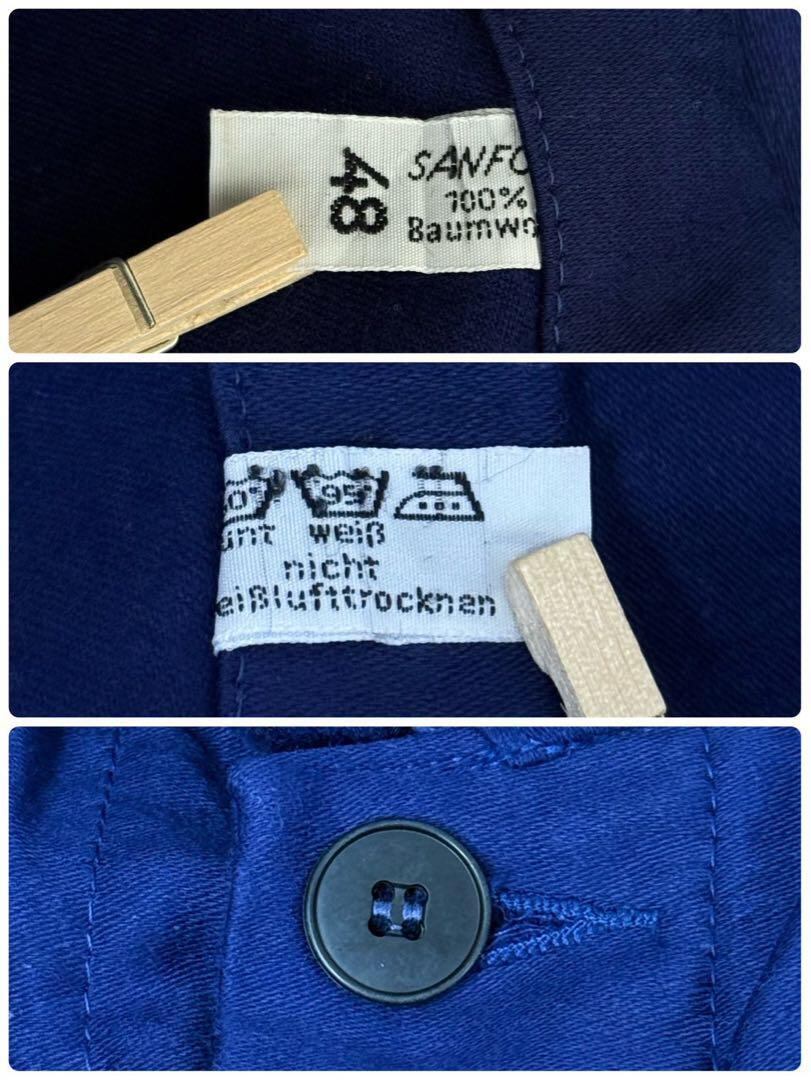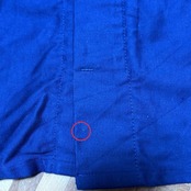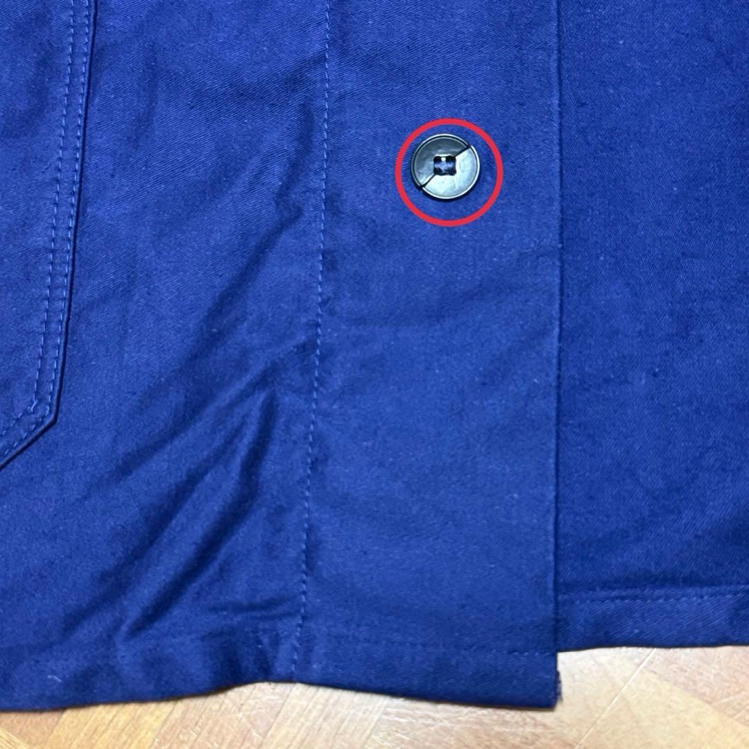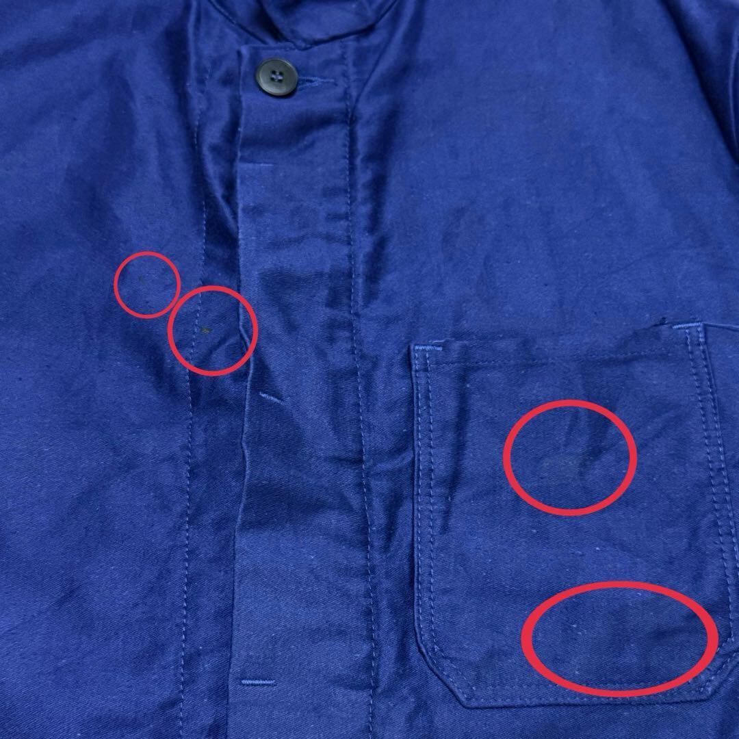 右袖、右胸、胸ポケット、裾、バック左右サイド。薄汚れ数カ所あり。フロント1番下ボタン割れあり。