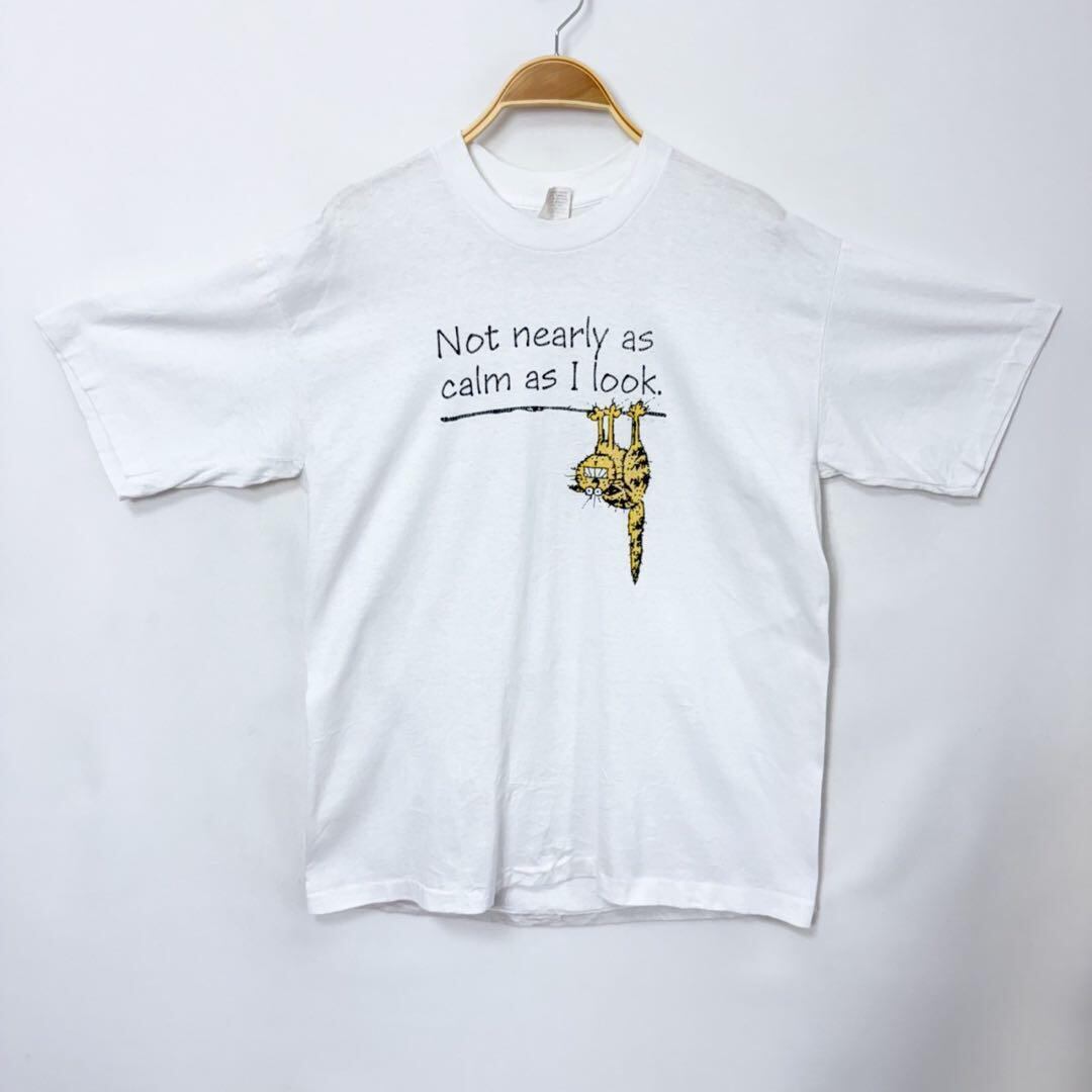 90年代 USA製 ネコ メッセージ 半袖 Tシャツ "Not Nearly As Calm As I Look "