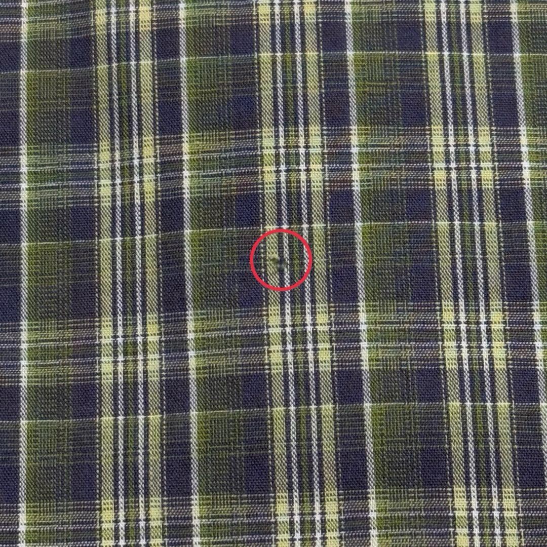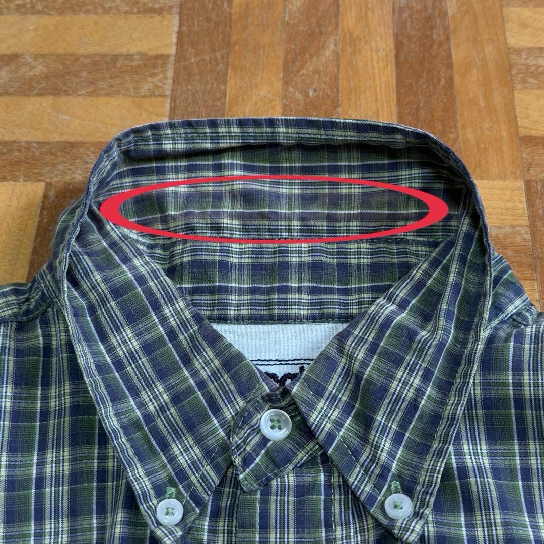 襟周り薄汚れあり。背中2㎜程度の生地引けダメージあり。