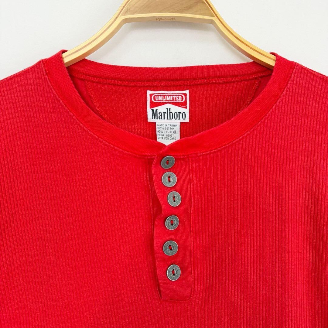 90年代 Marlboro マルボロ メタルボタン ヘンリーネック ロングスリーブ Tシャツ