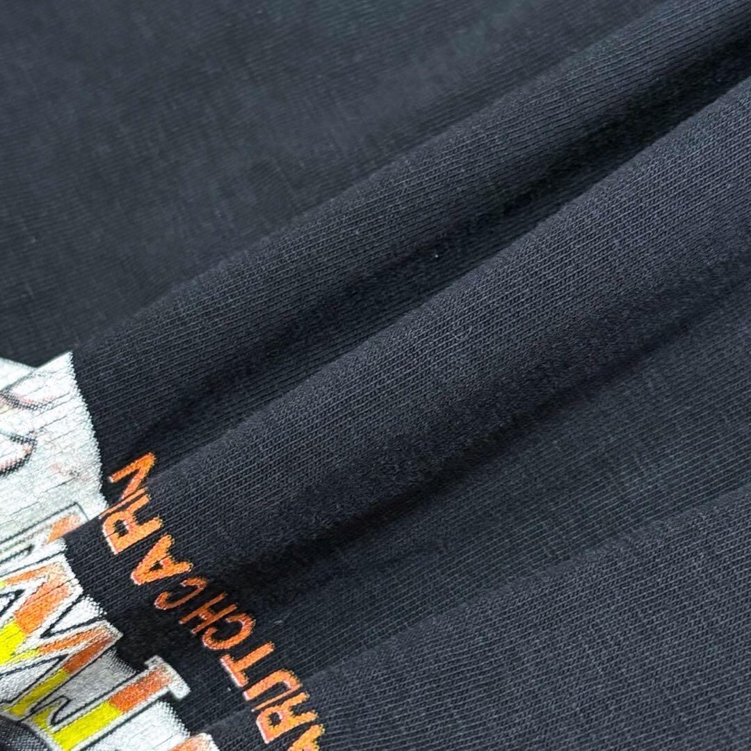 バック左袖、右肩、胸、右サイド、腰、薄汚れ、色抜け数カ所あり。首元右下、バック左裾上、リペア跡数カ所あり。バックプリント剥げ、ひび割れあり。