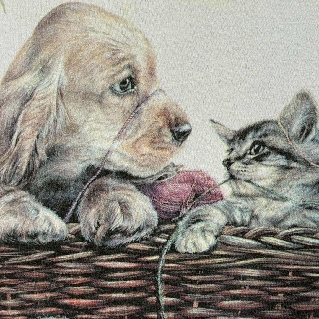Vintage 90s Anvil T-Shirt 3XL Made in USA Single Stitch Dog Cat Art Print Karen George
