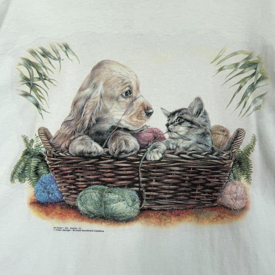 90s USA製 Anvil アニマルプリント 犬 猫 Karen George 半袖 アート Tシャツ