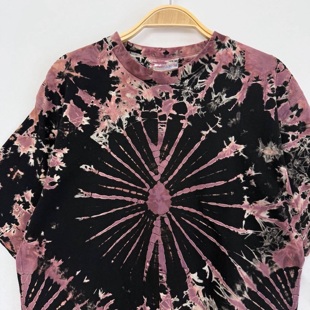 Vintage Ice Blue Tattoo Tie Dye T-Shirt L Made in Thailand “Made in Hell” Tag Black Purple Burst Pattern