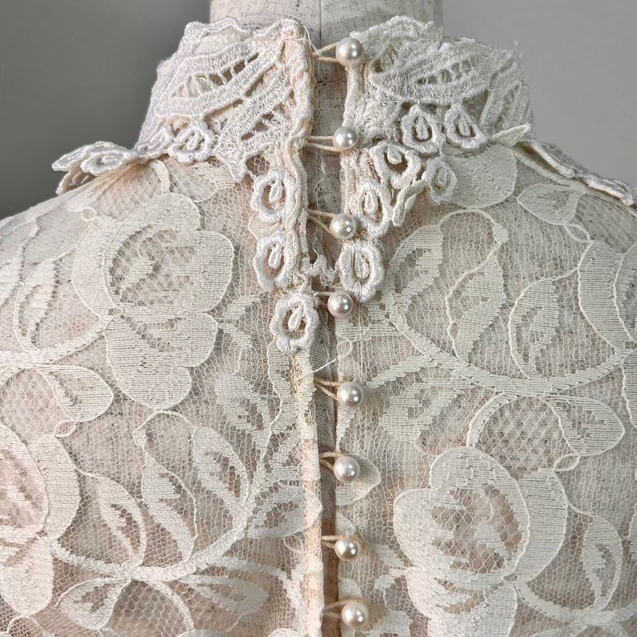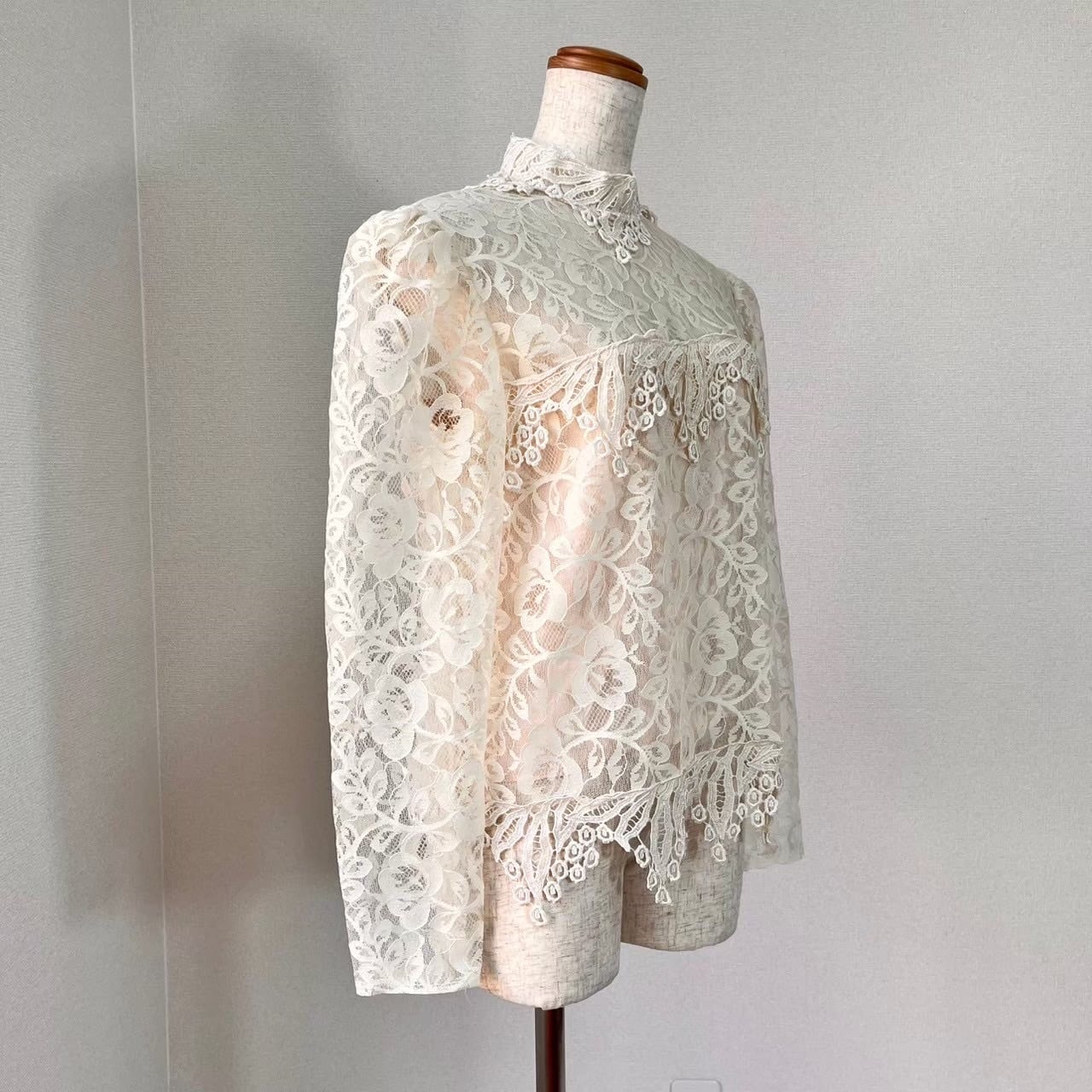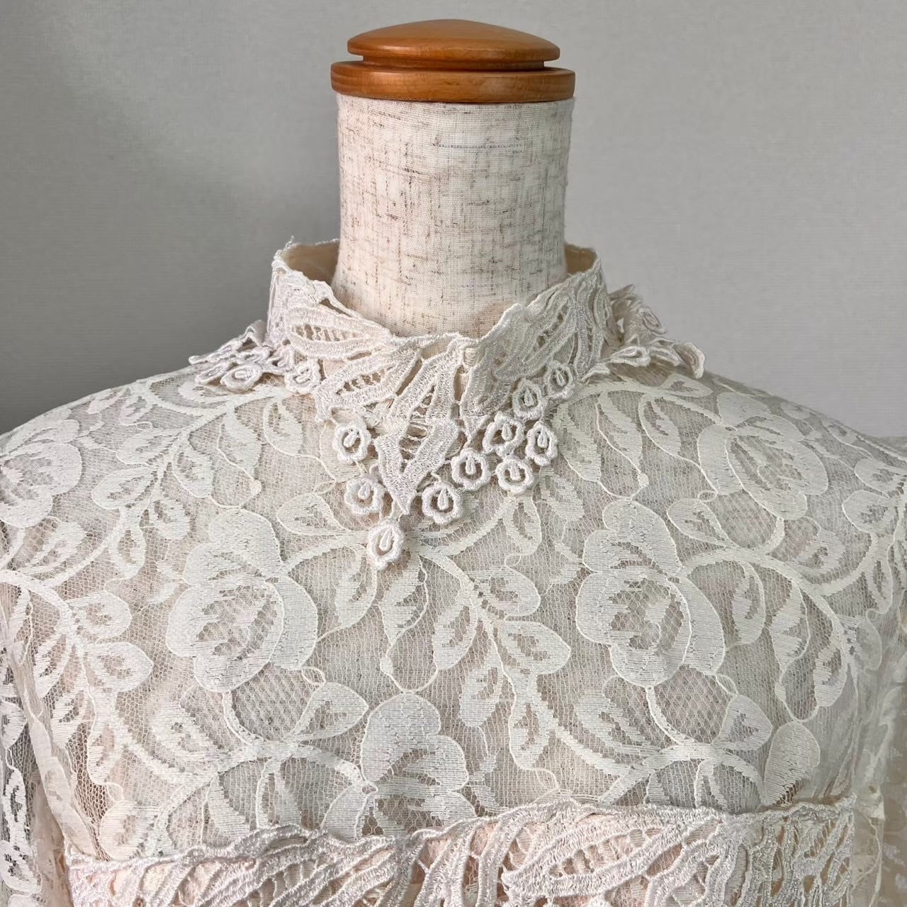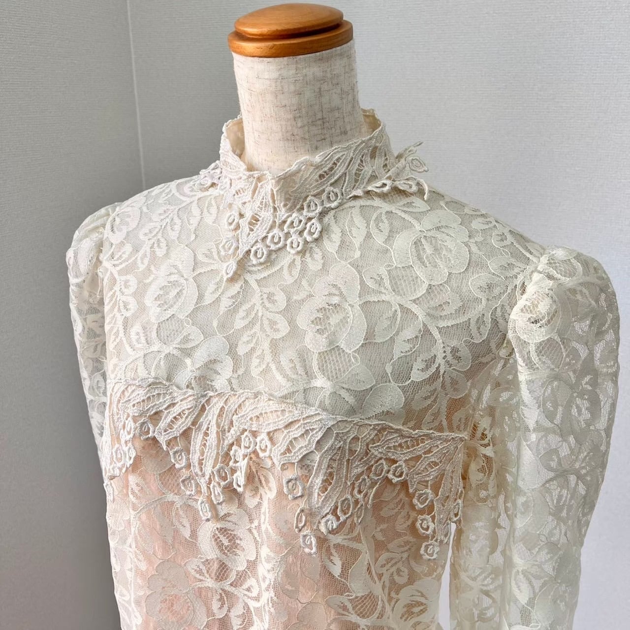 70年代 USA製 総レース ハイネック ヴィクトリアンブラウス