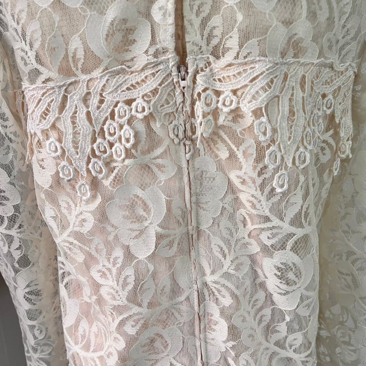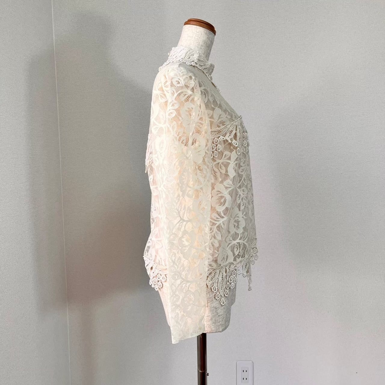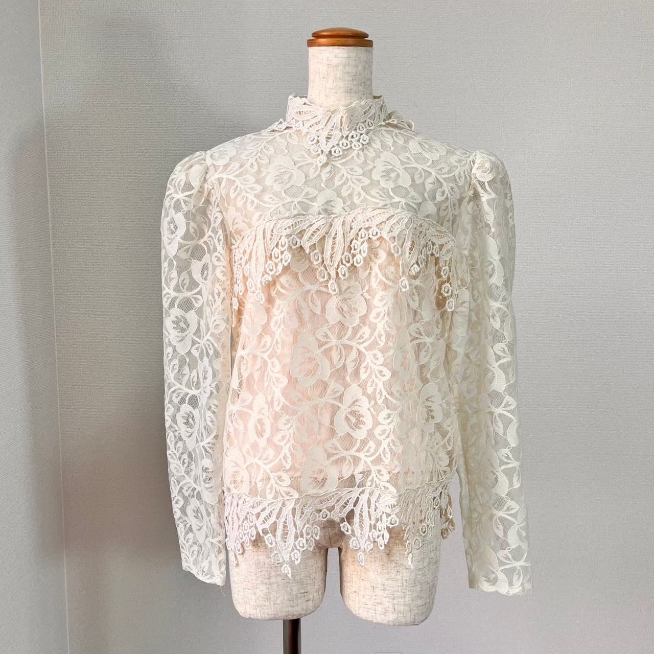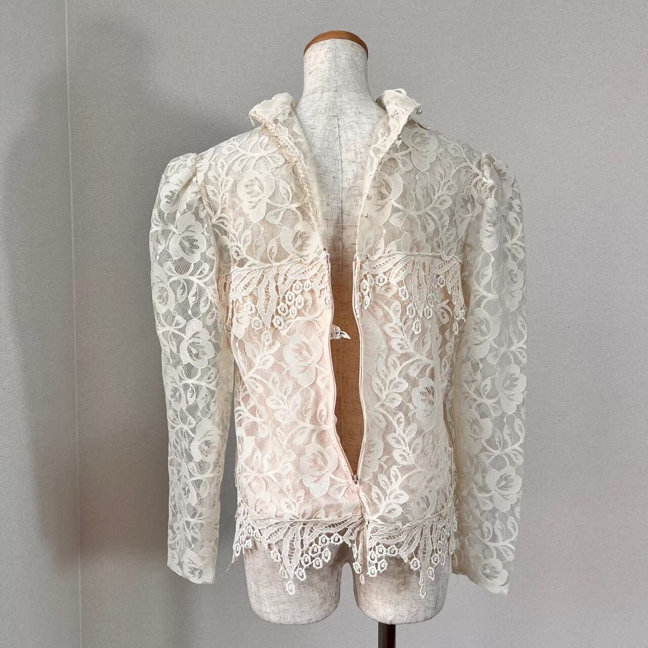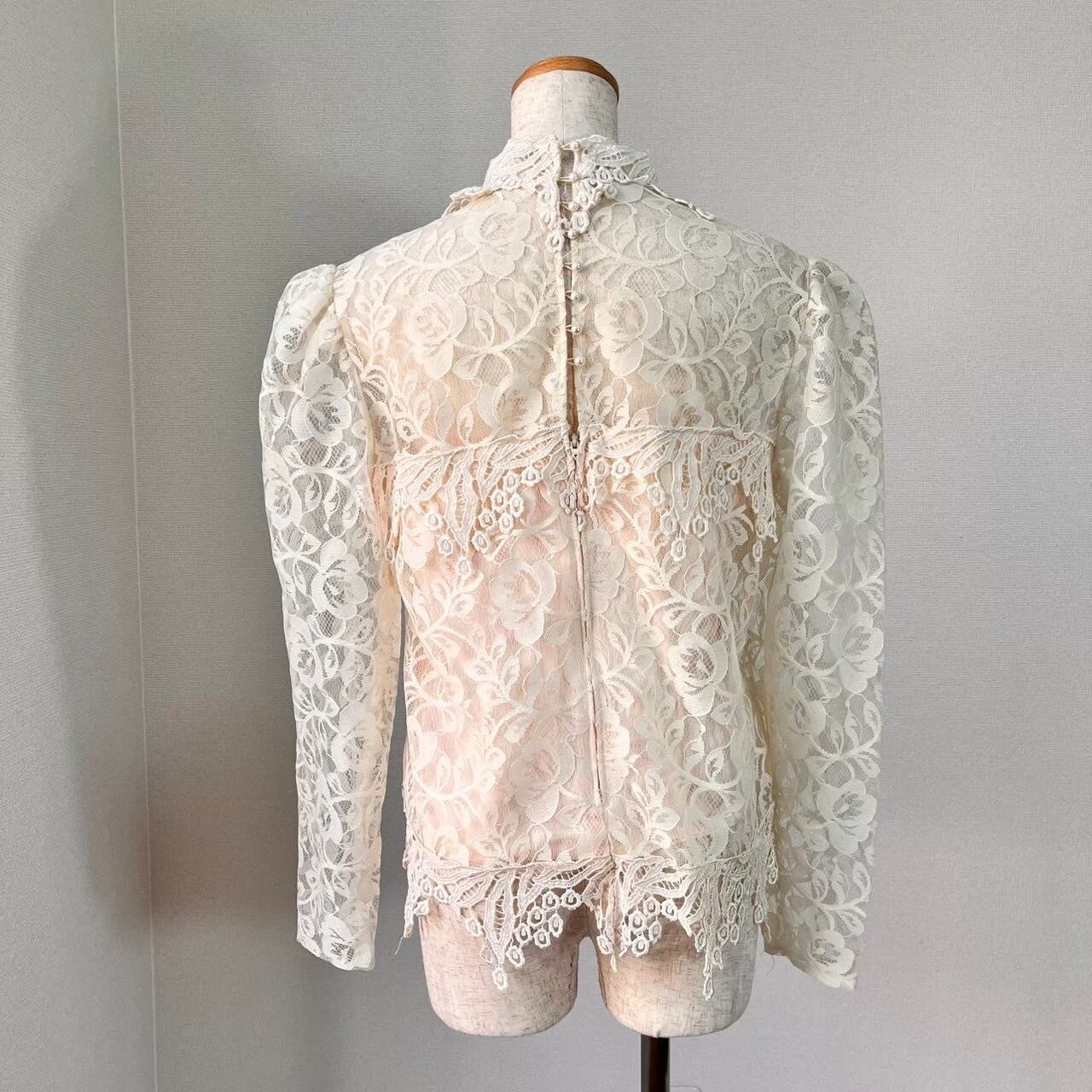 70年代 USA製 総レース ハイネック ヴィクトリアンブラウス