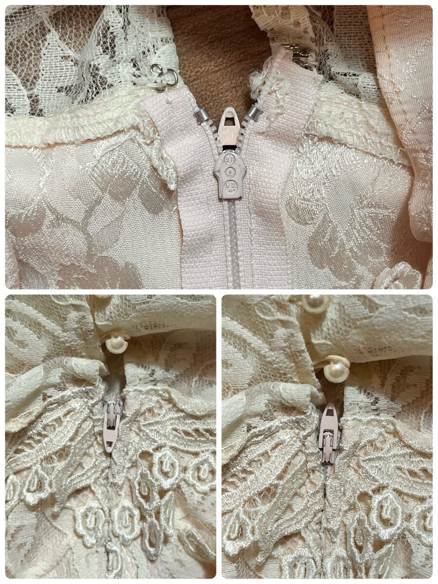 ネックラインと切替部分には立体感のあるレーストリムが施されています。