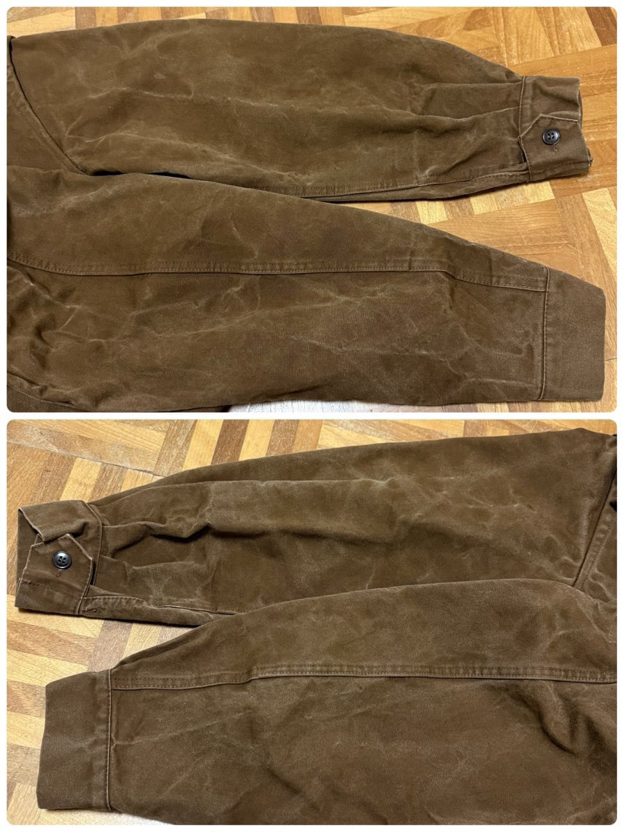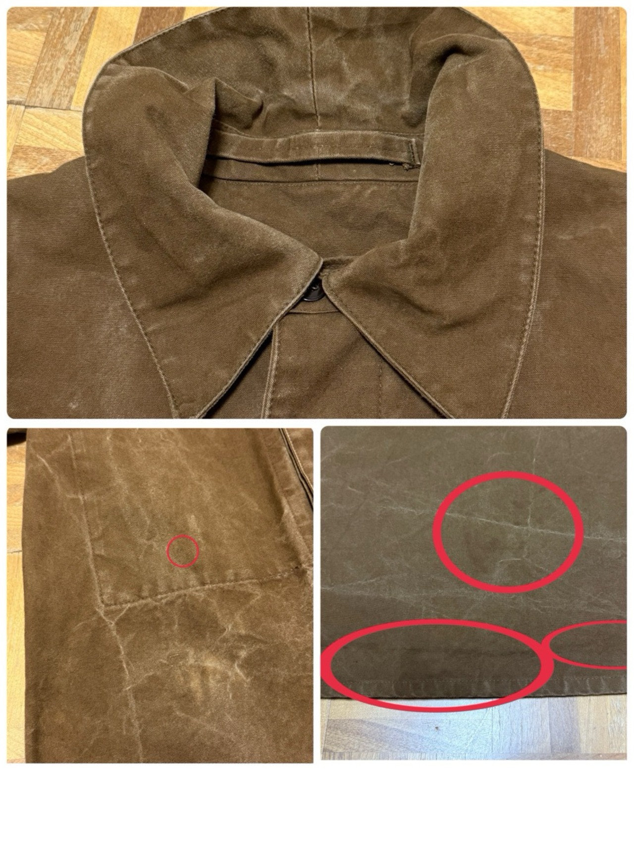 袖、フロント、バック全体的にアタリあり。右サイド、バック裾辺りに薄汚れ数カ所あり。
