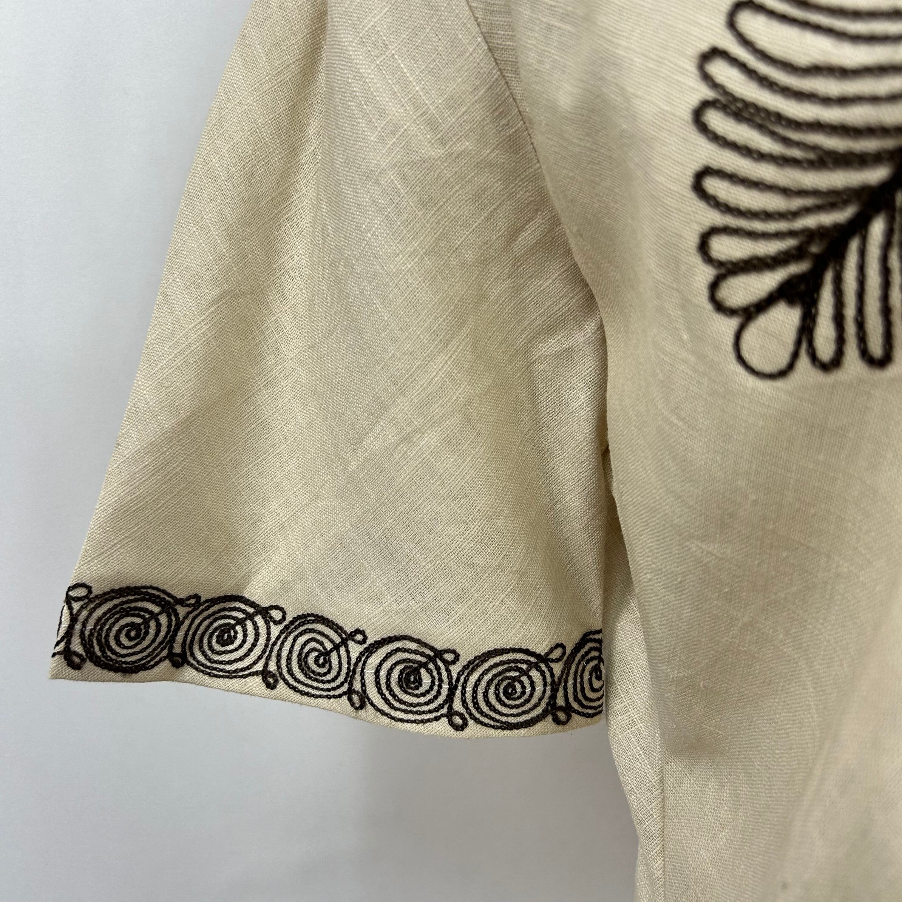 ビンテージ 刺繍デザイン 半袖 リネン ロングワンピース ドレス