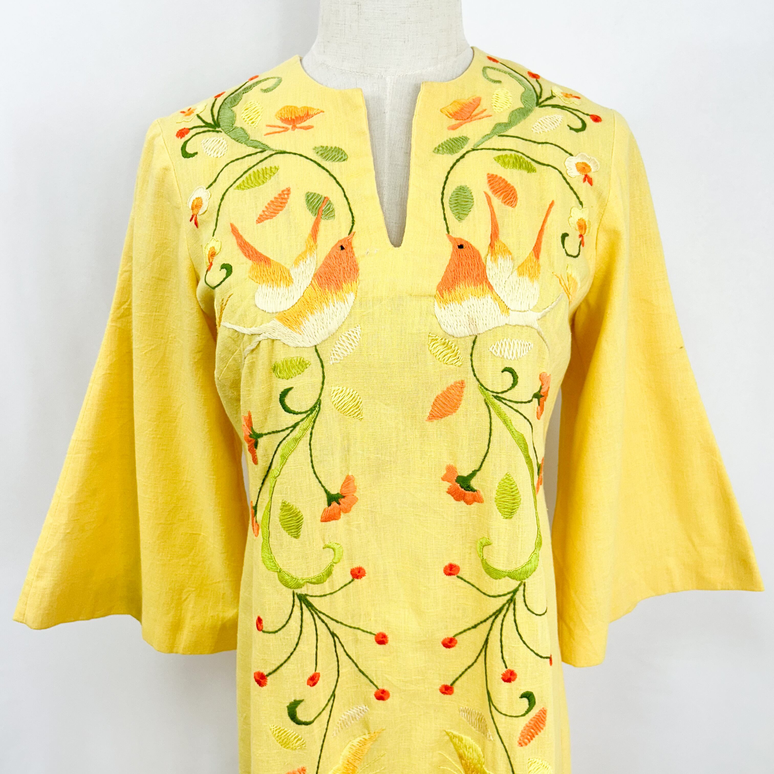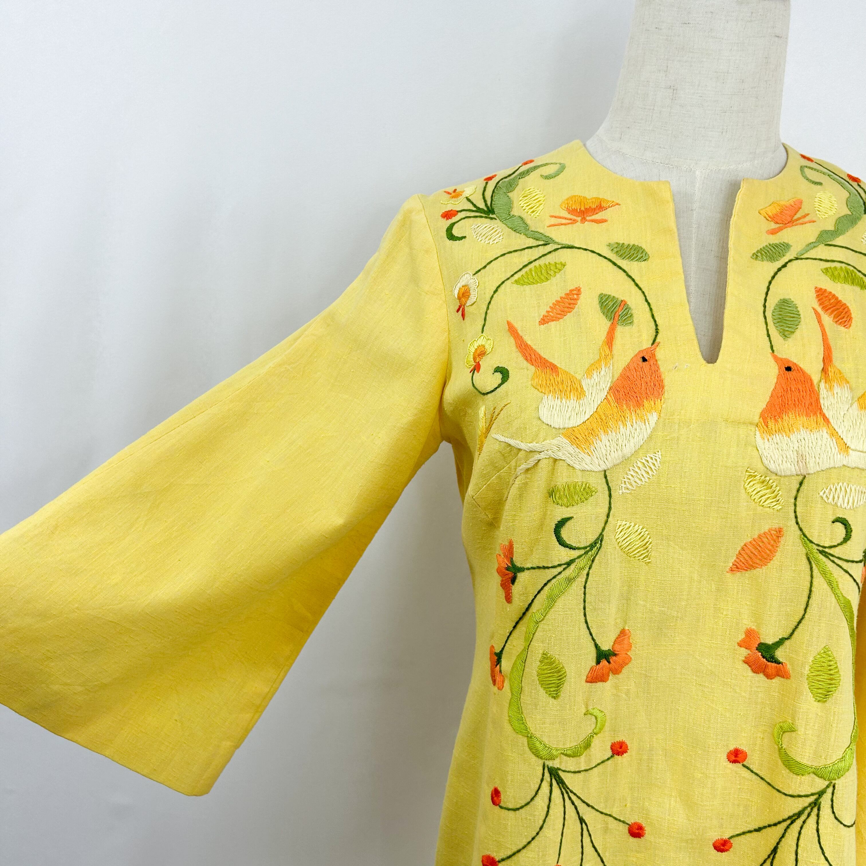 ビンテージ 刺繍デザイン 七分袖 コットン
