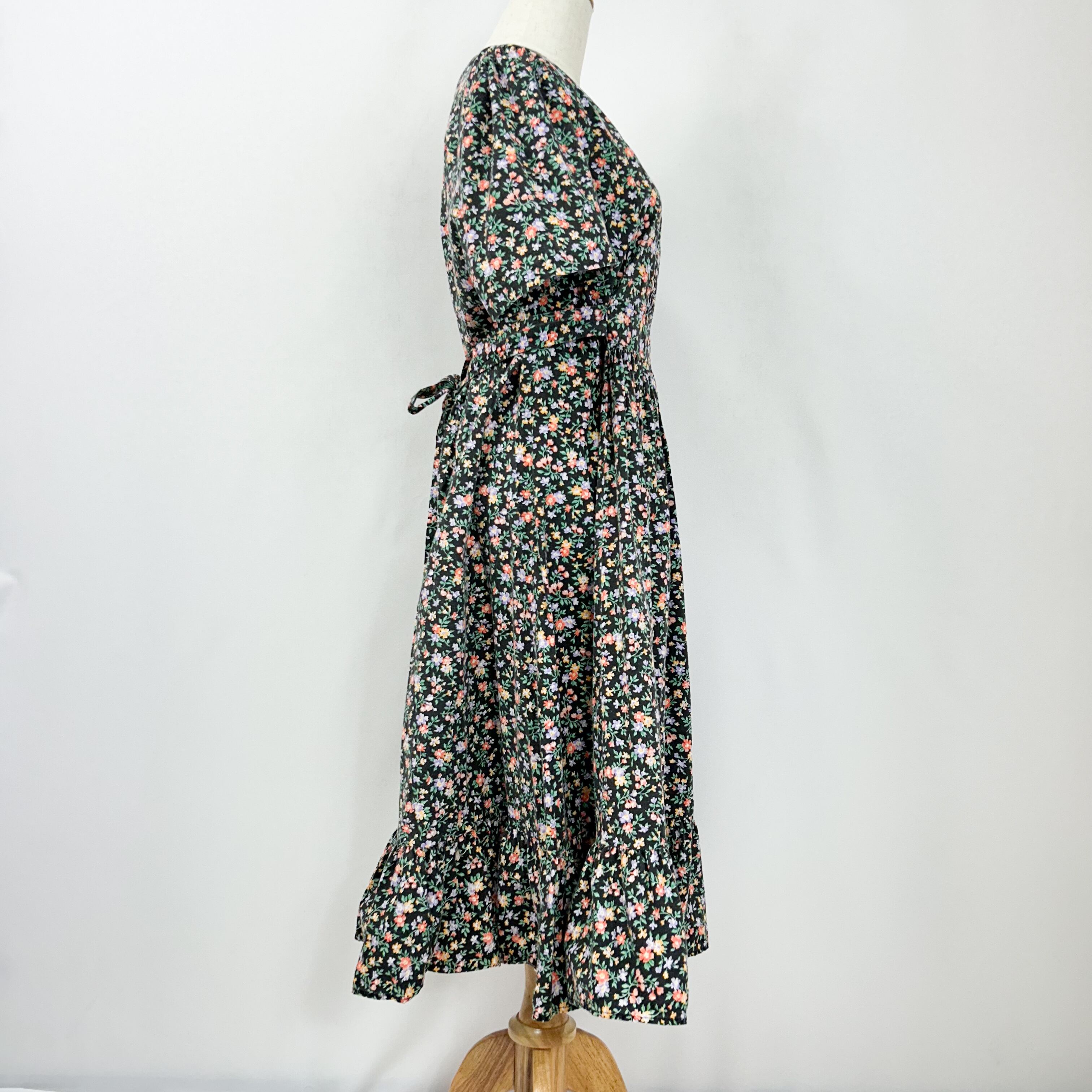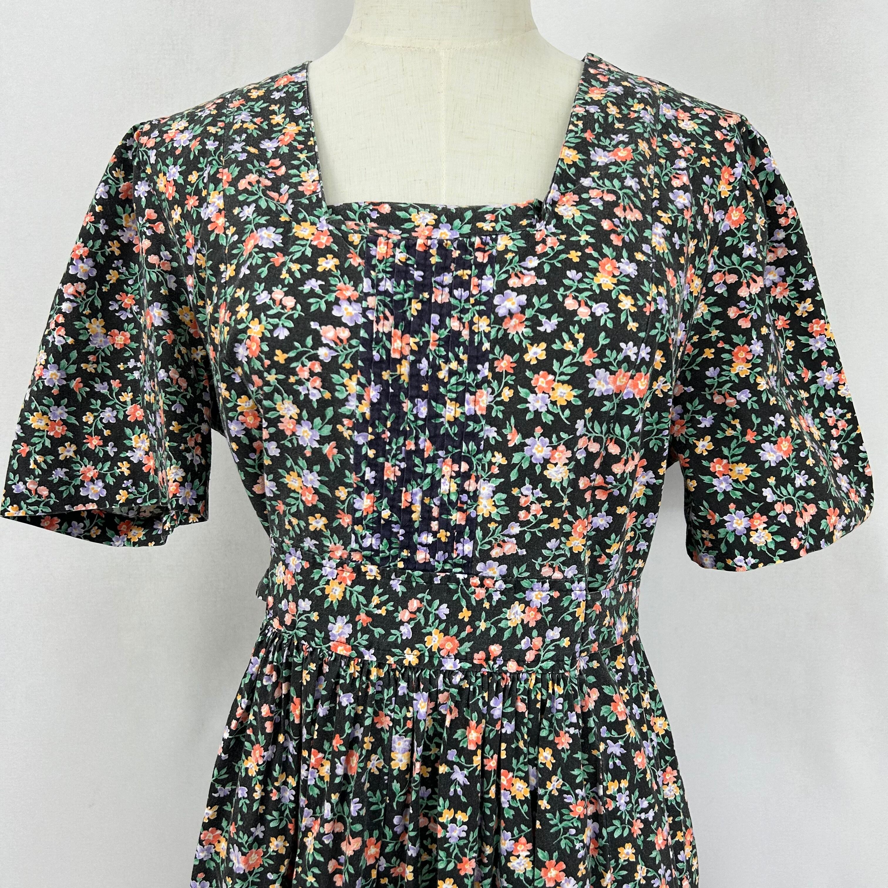 Sears シアーズ 小花柄 総柄 フラワープリント 裾フリル ピンタック 膝下丈 ロング丈 フレアワンピース 70s 80s TALONジップ ロケットタロンジップ