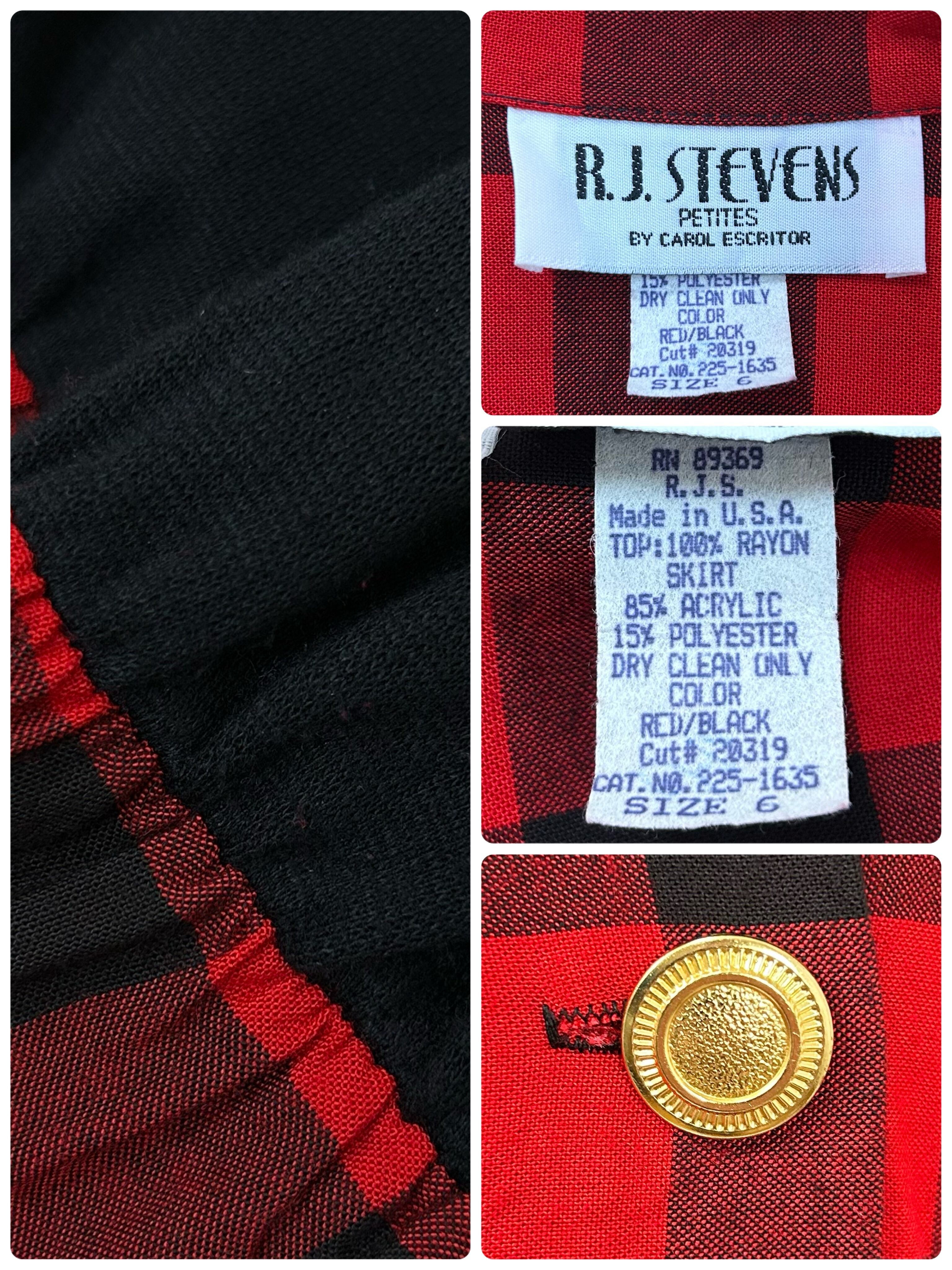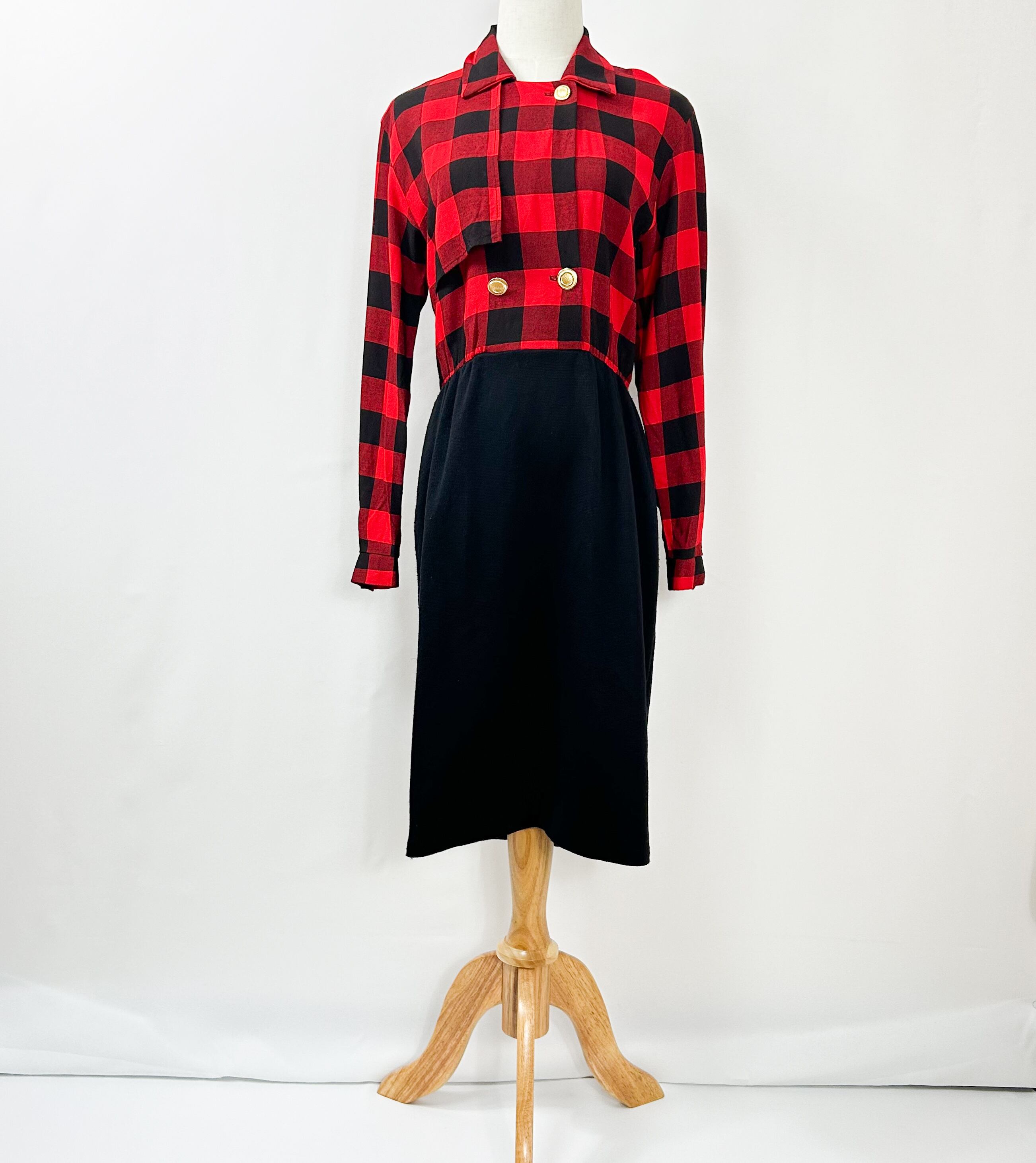 USA製 アメリカ製 R.J. STEVENS チェック 切り替え 金ボタン 膝丈 長袖 タイト ワンピース ビンテージ ヴィンテージ