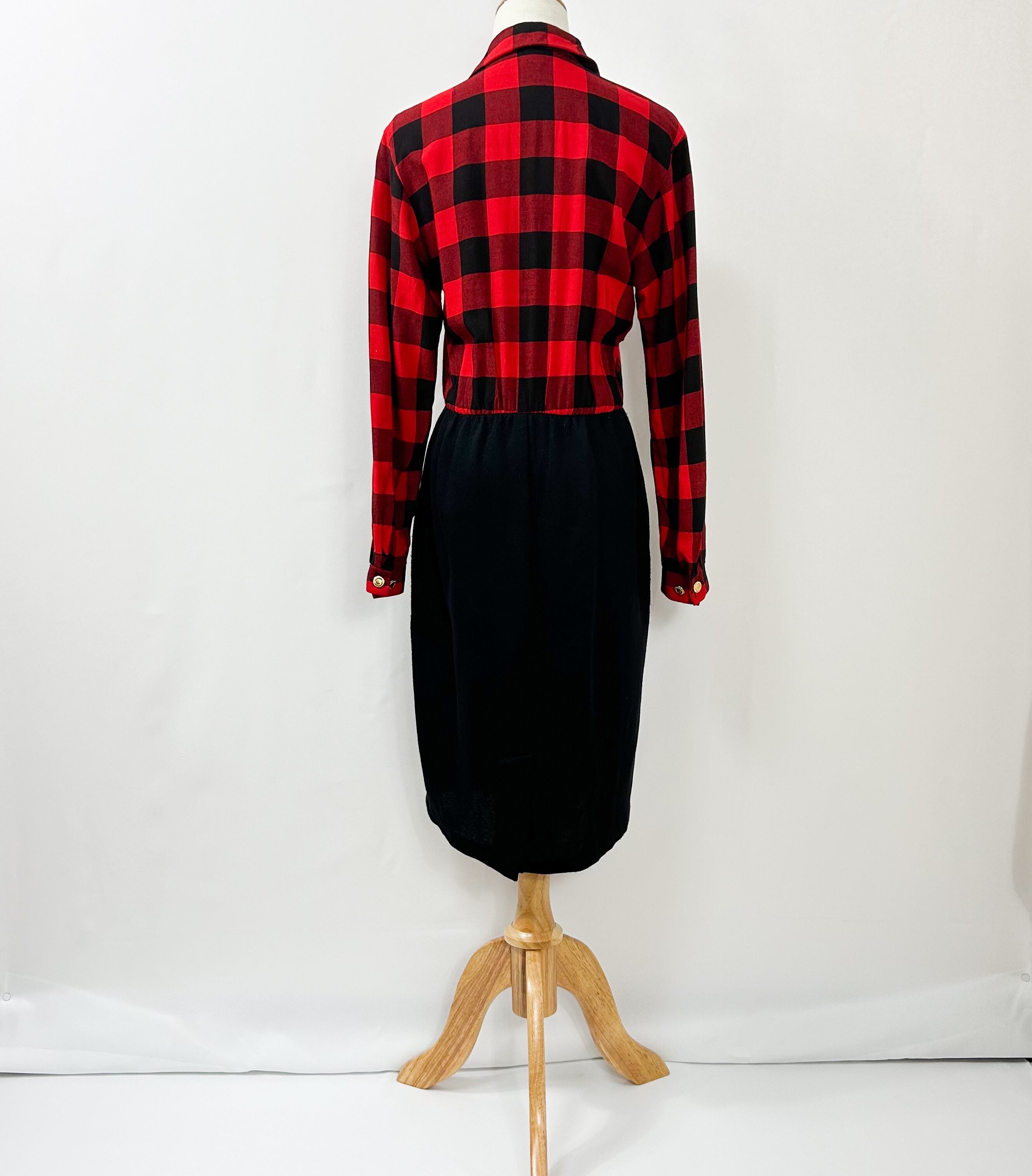 vintage R.J. STEVENS long sleeve plaid tight one piece dress