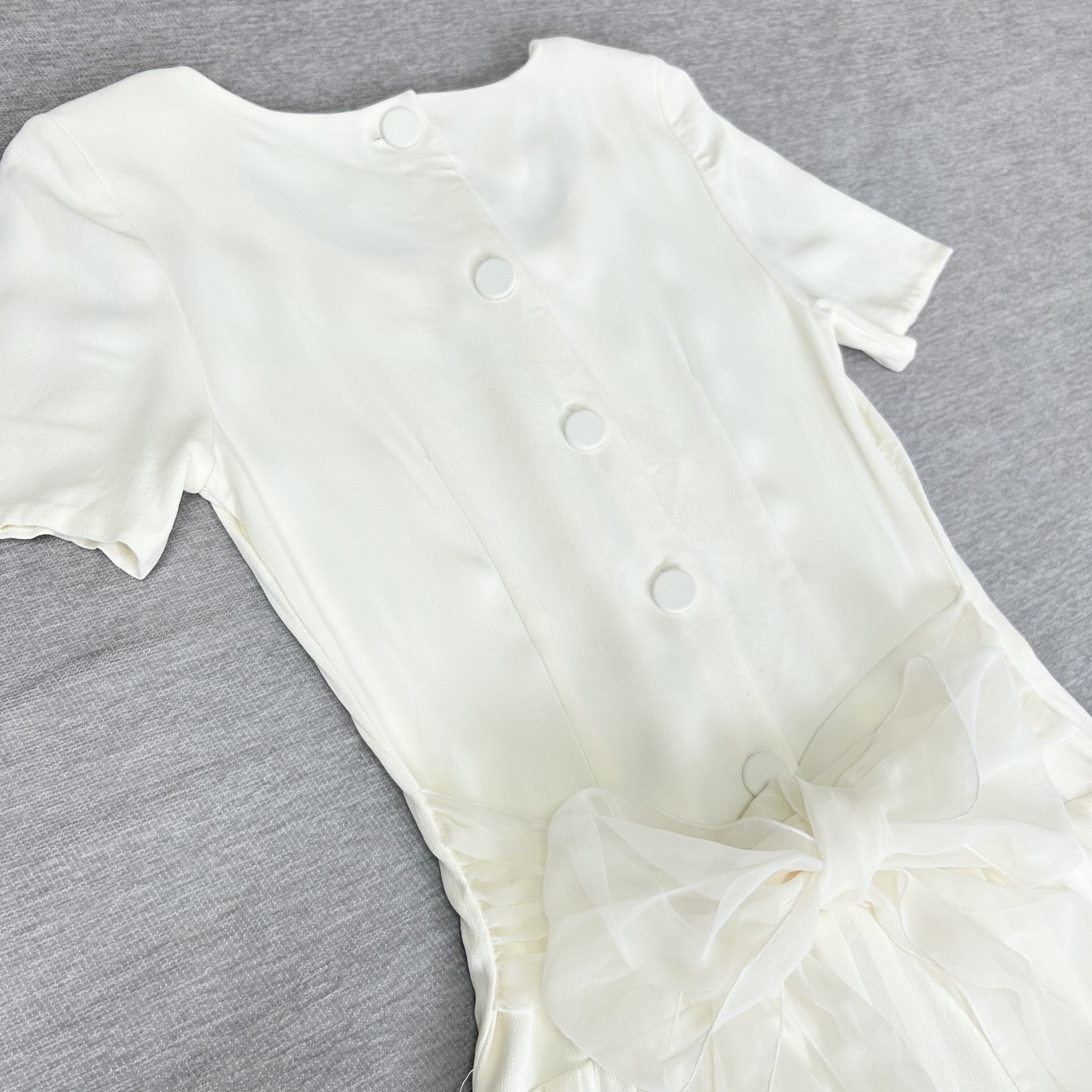 80s 90s ビンテージ USA製 ウエストリボン 半袖 ロング ワンピース ドレス