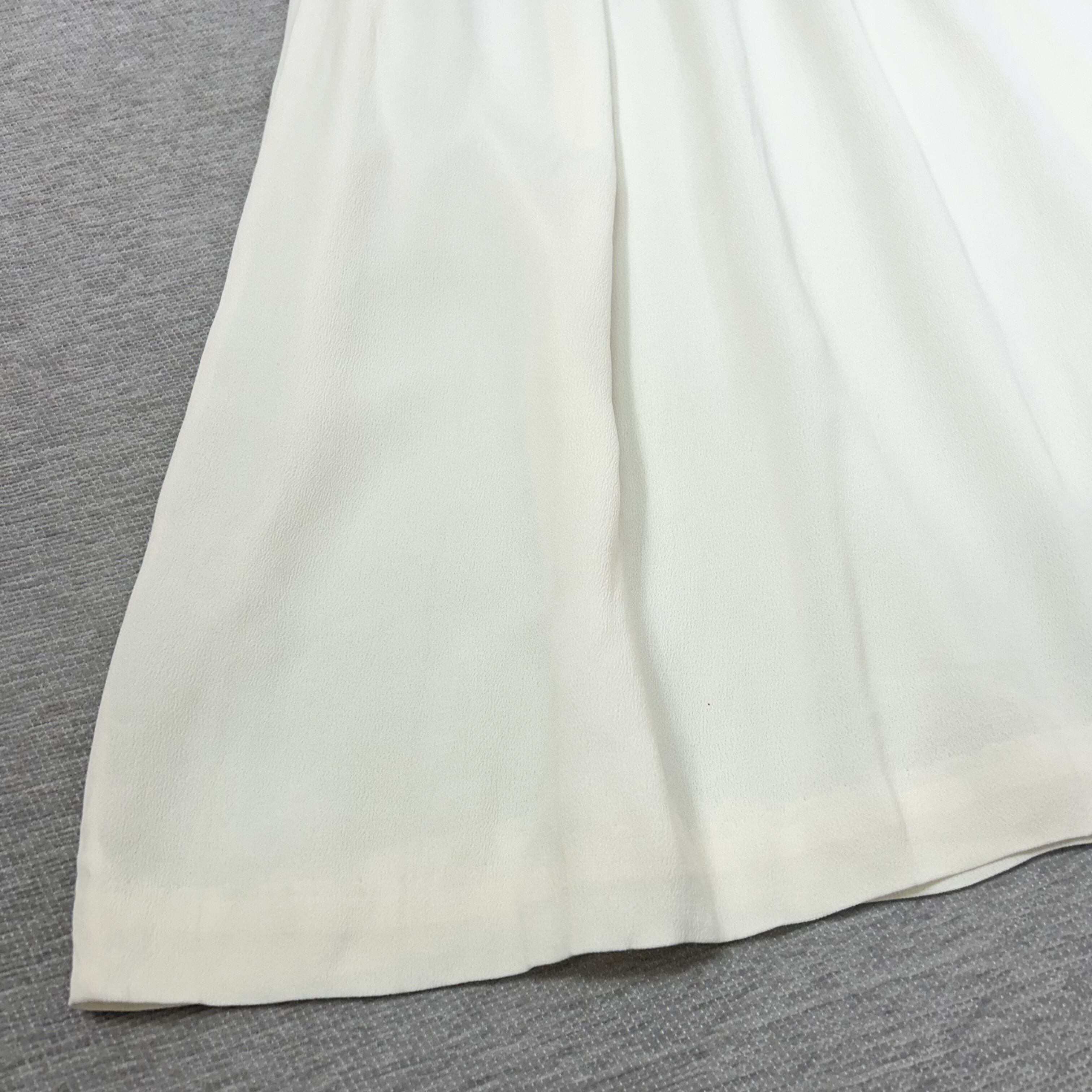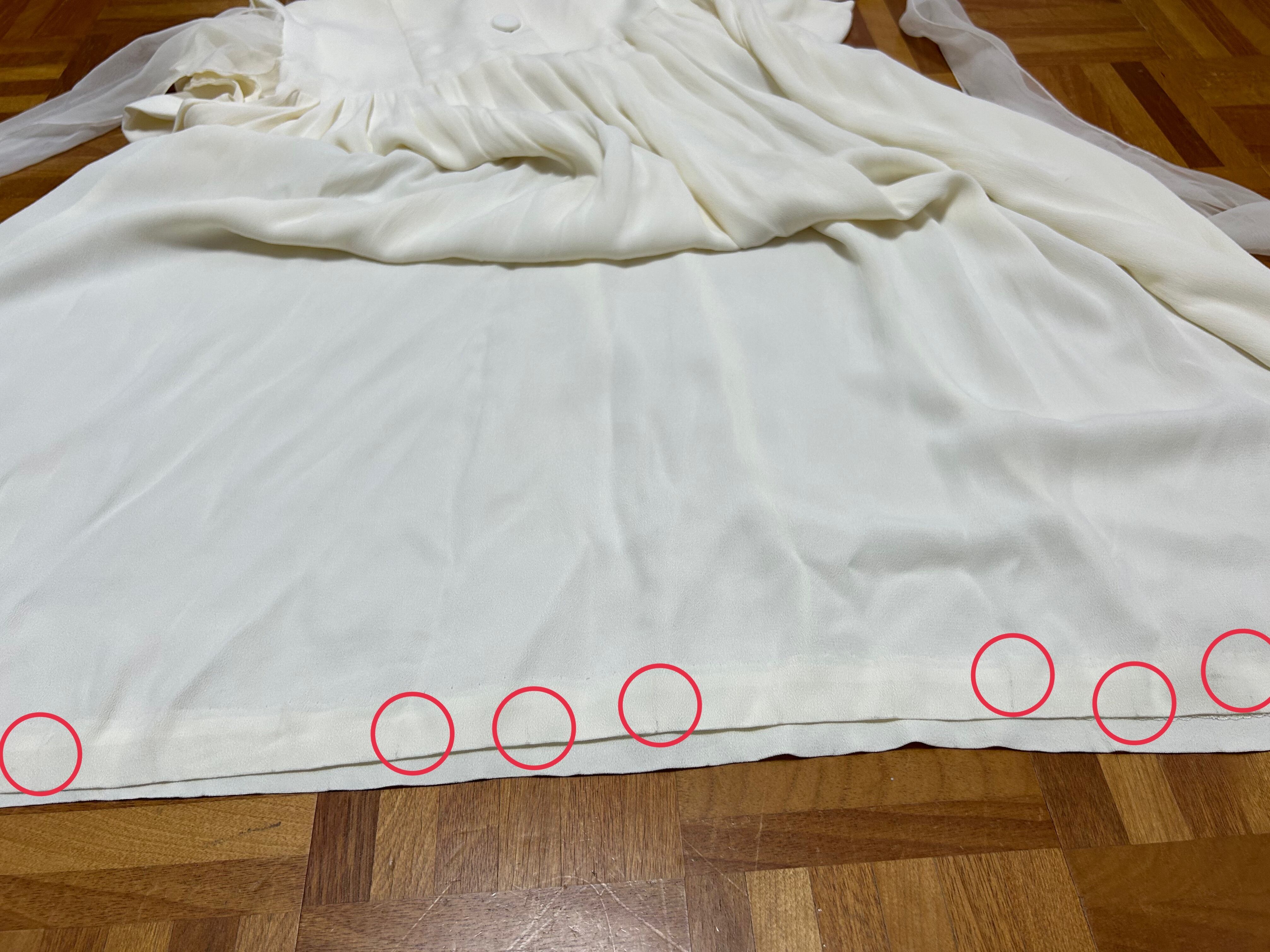 フロント裾に1㎜程度のピンホールあり。バック右袖、スカート真ん中、前後裾に薄汚れ数カ所あり。