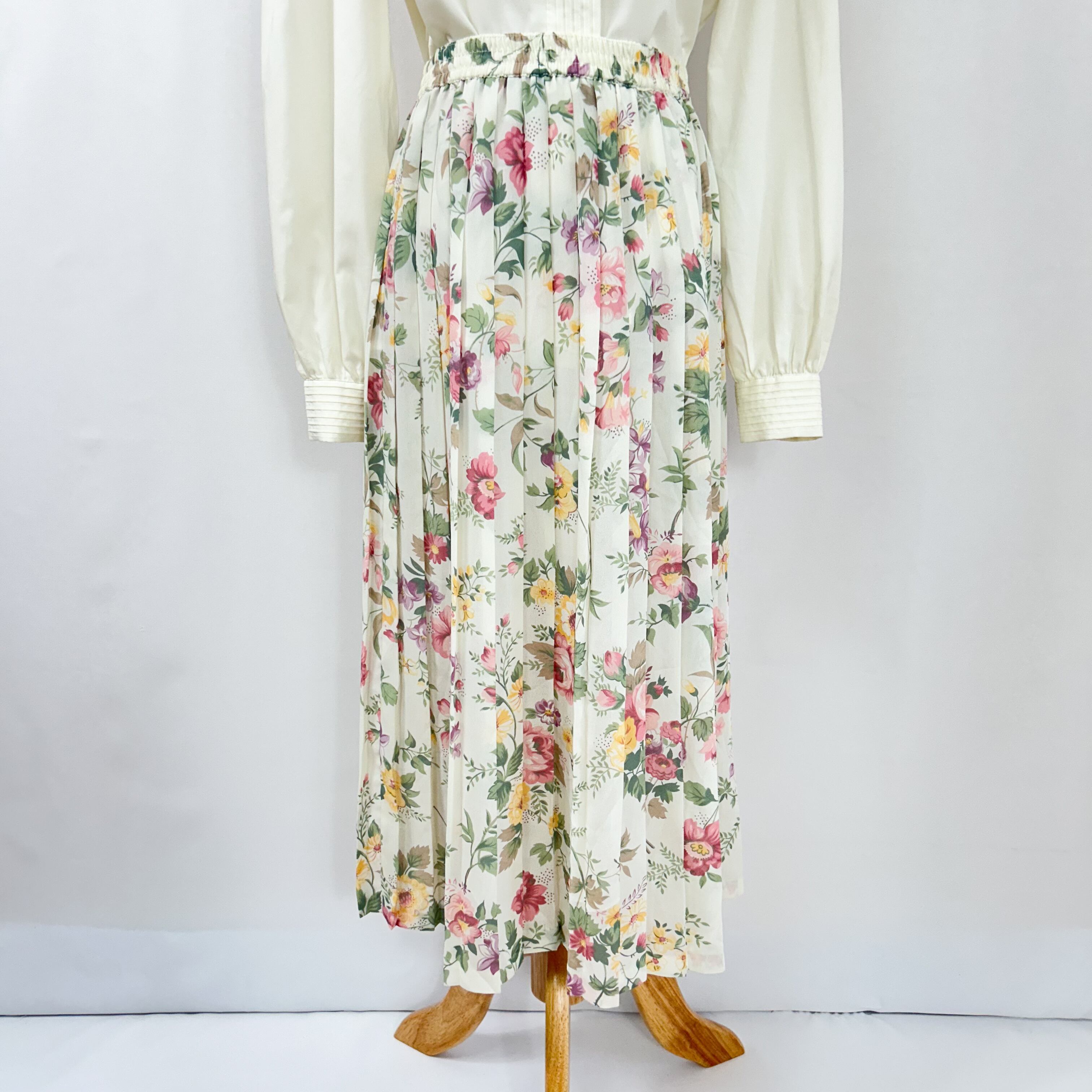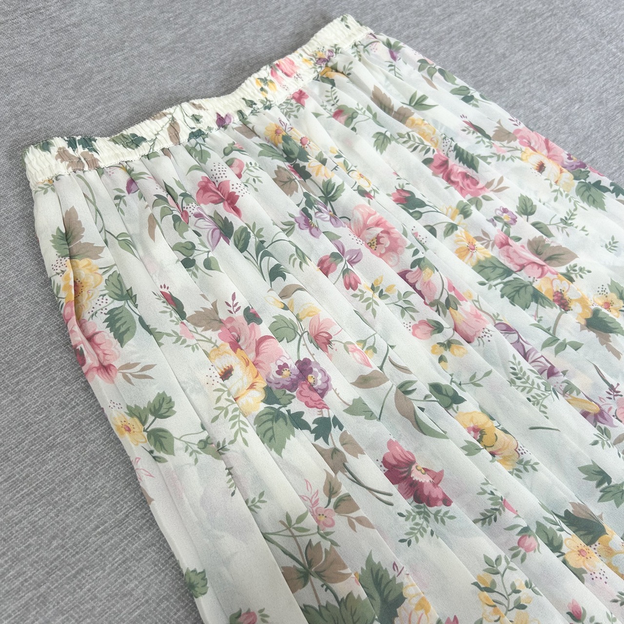 花柄 フラワープリント シフォン ロング プリーツスカート