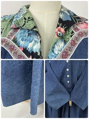 ヴィンテージ 80s USA製 花柄 切り替え ジャガード織 長袖 パフスリーブ デニム ロングワンピース