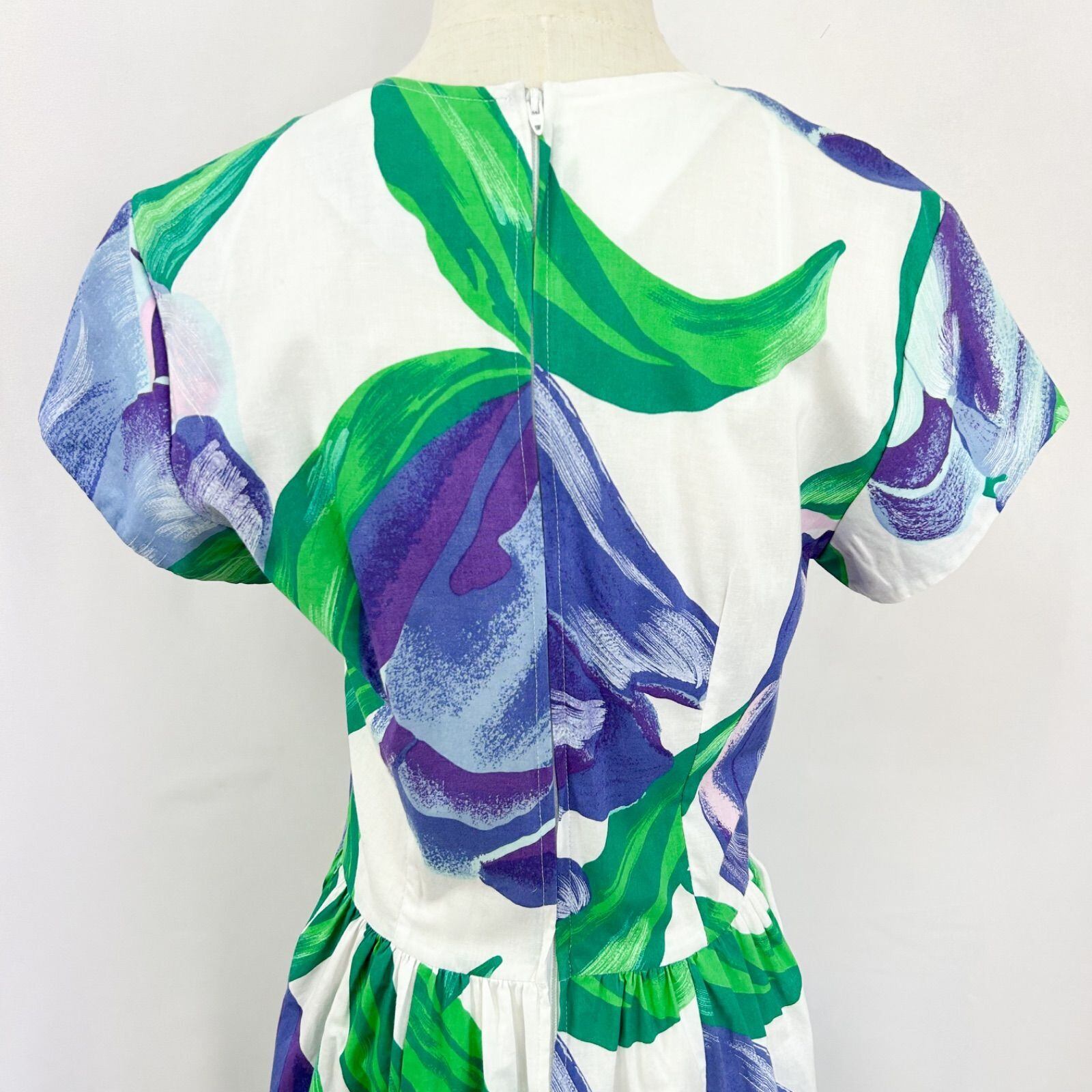 80s 80年代 ビンテージ USA製 S.L Fashions 花柄 総柄 フラワープリント 半袖 ロング丈 フレアワンピース
