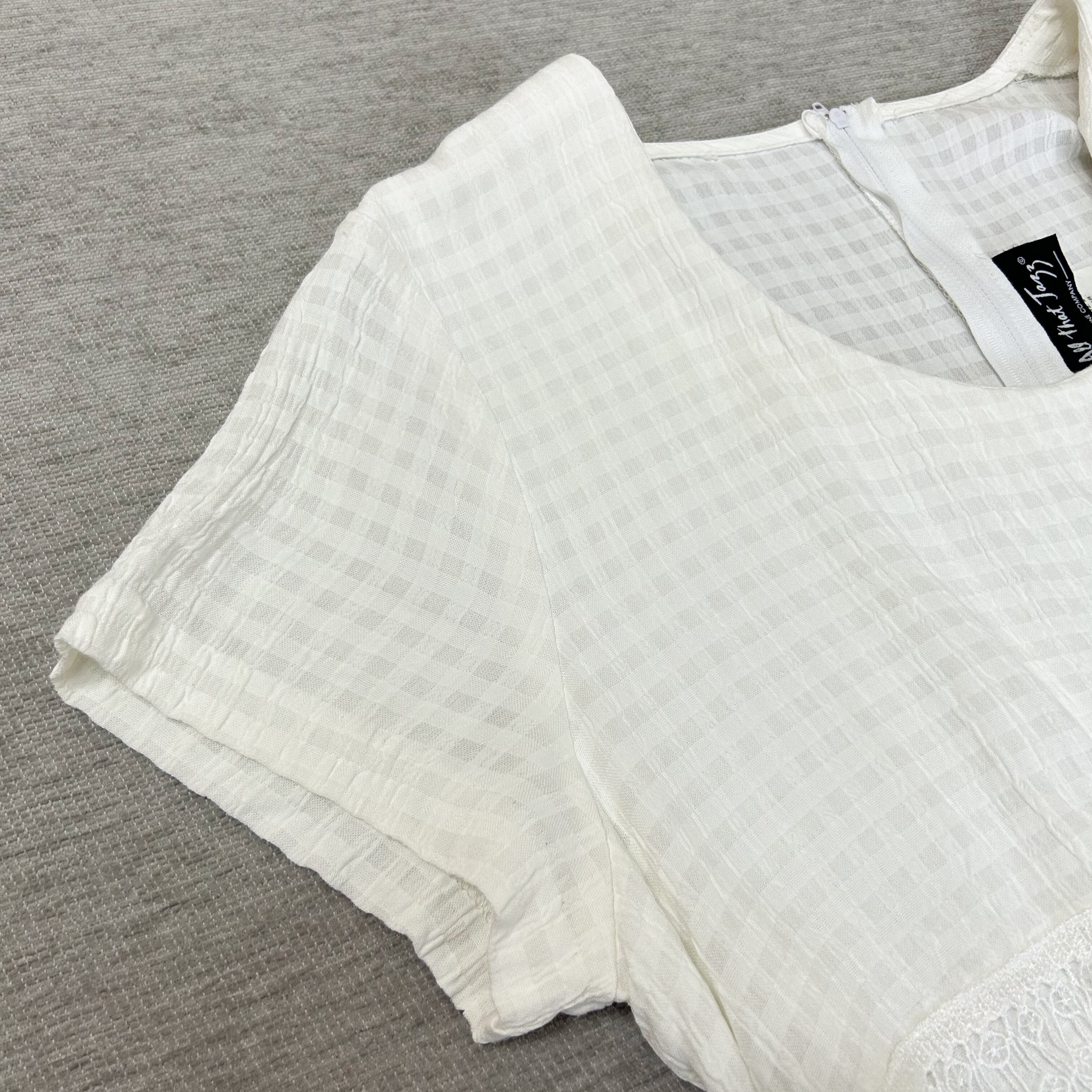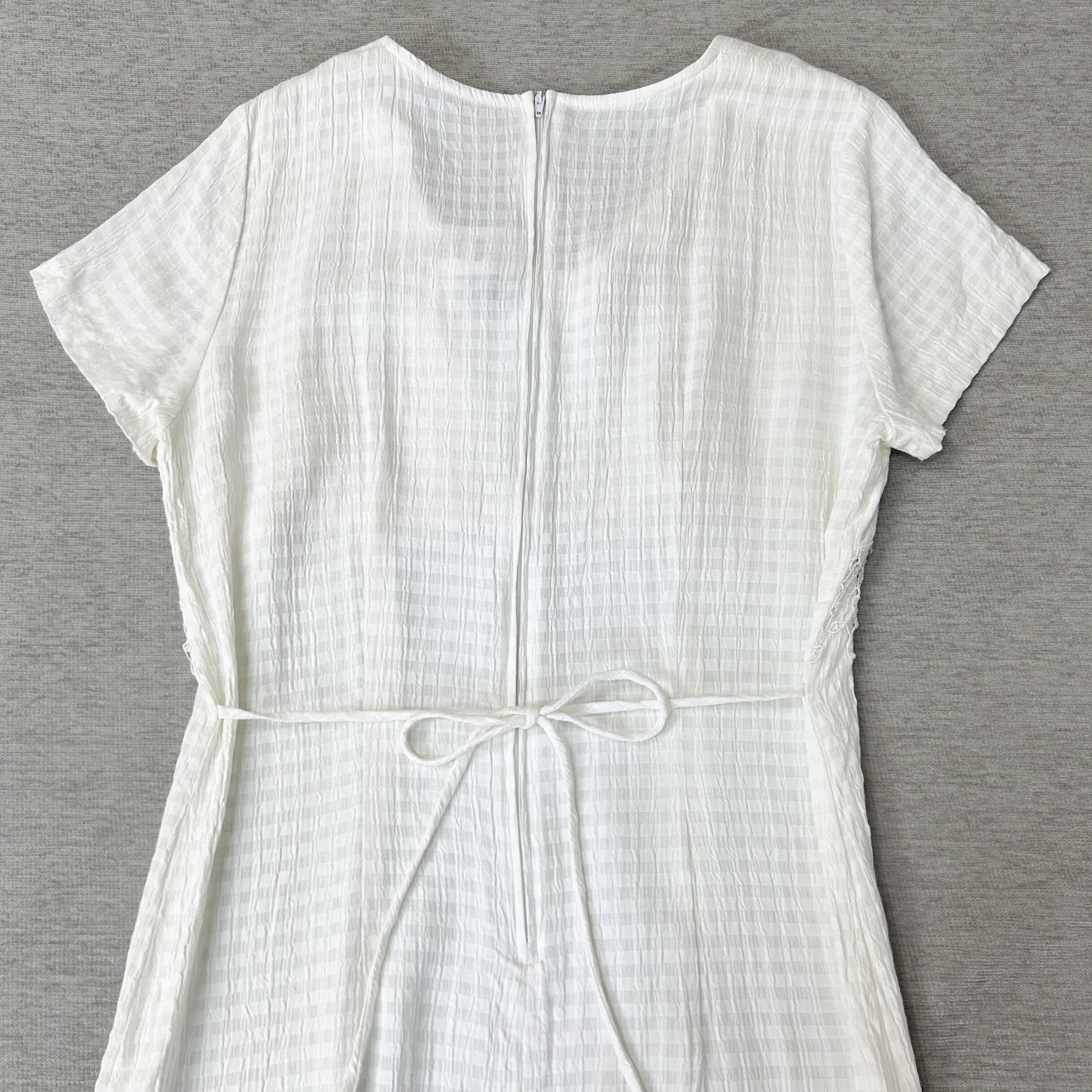 USA製 レーヨン混 半袖 レースデザイン チェック柄 ロング ワンピース ドレス