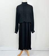花柄刺繍 ハイネック プリーツロングワンピース