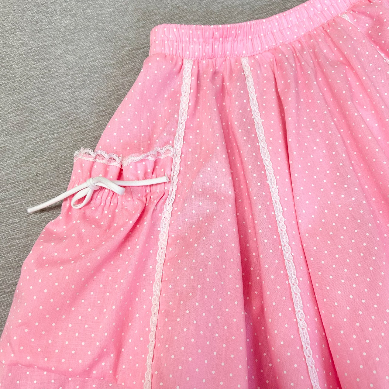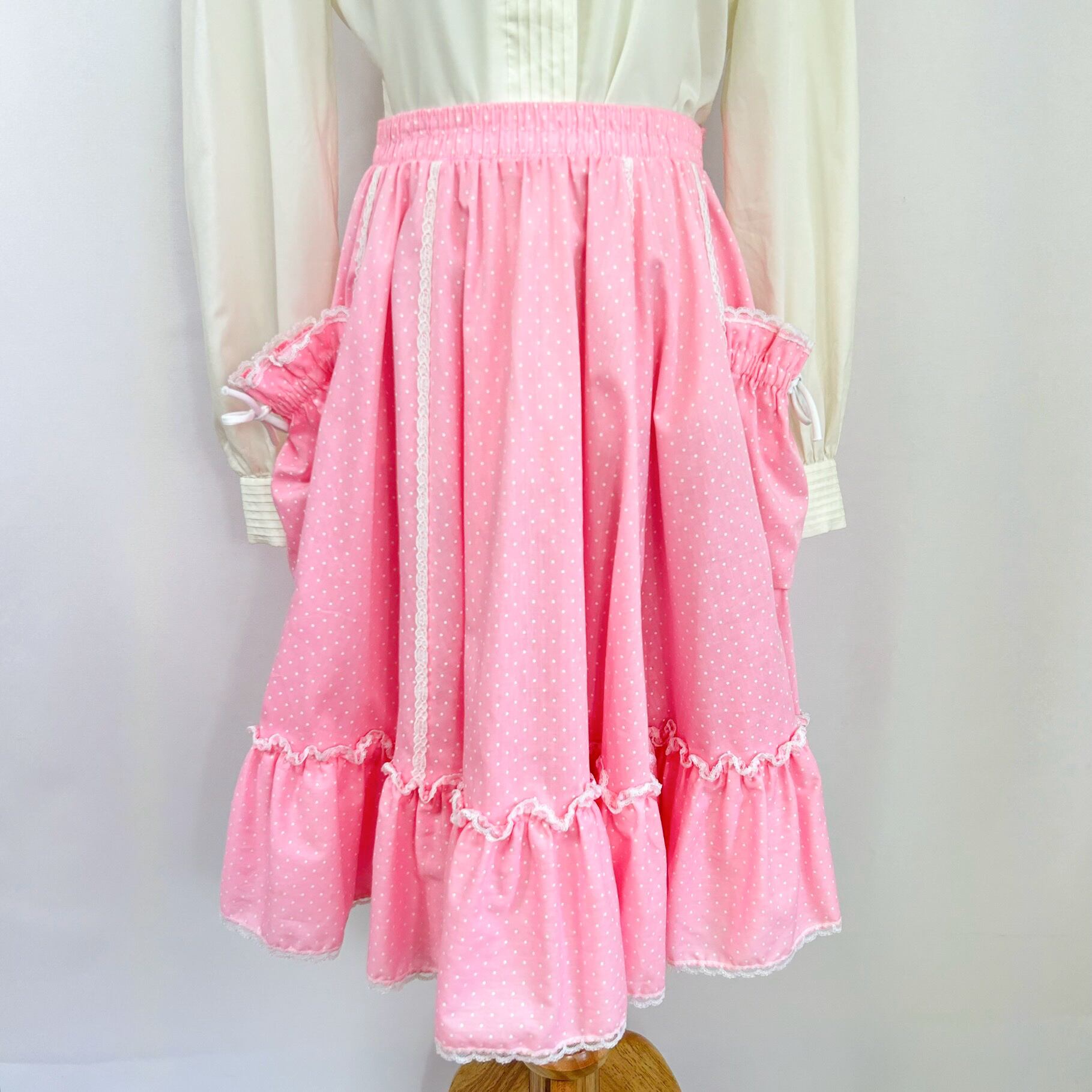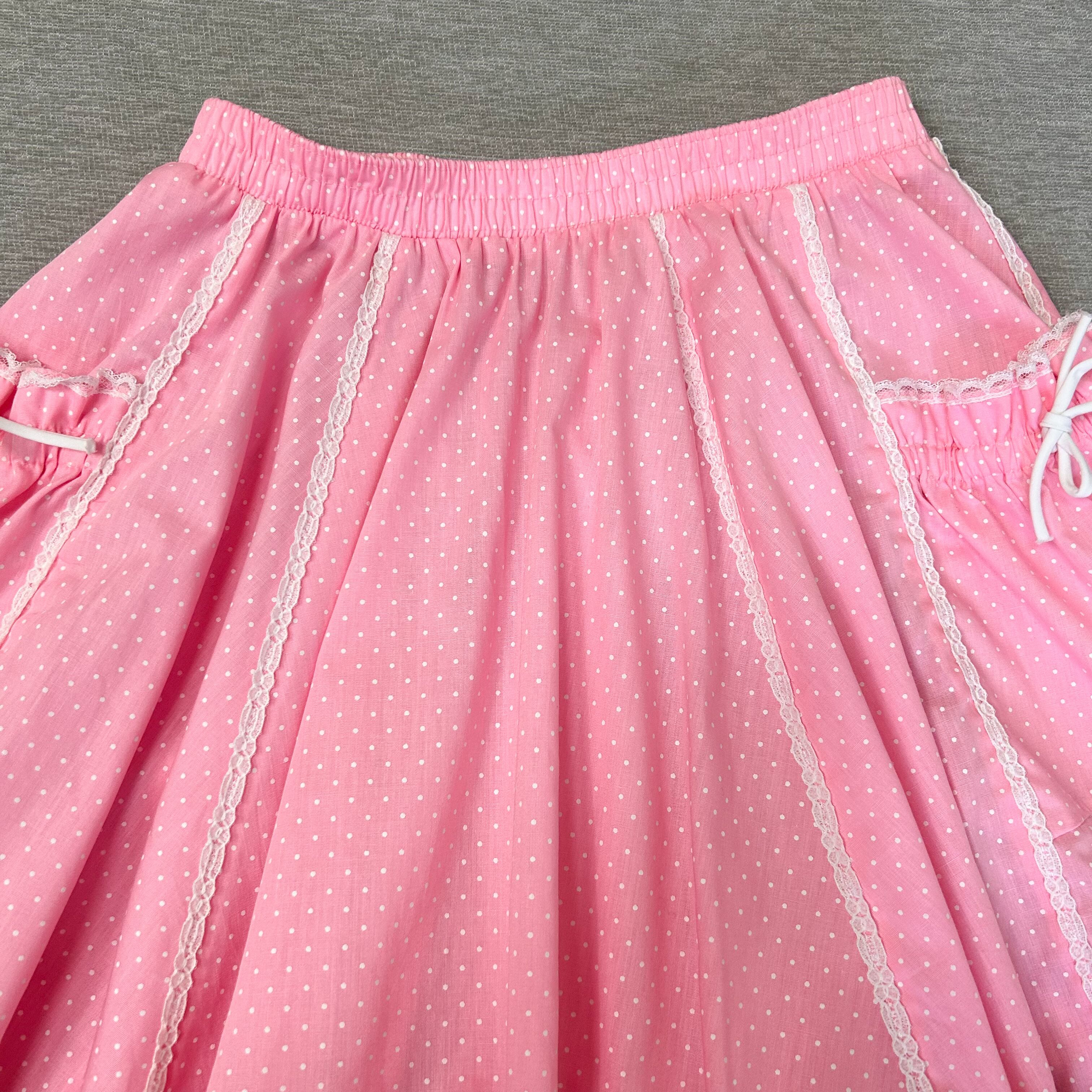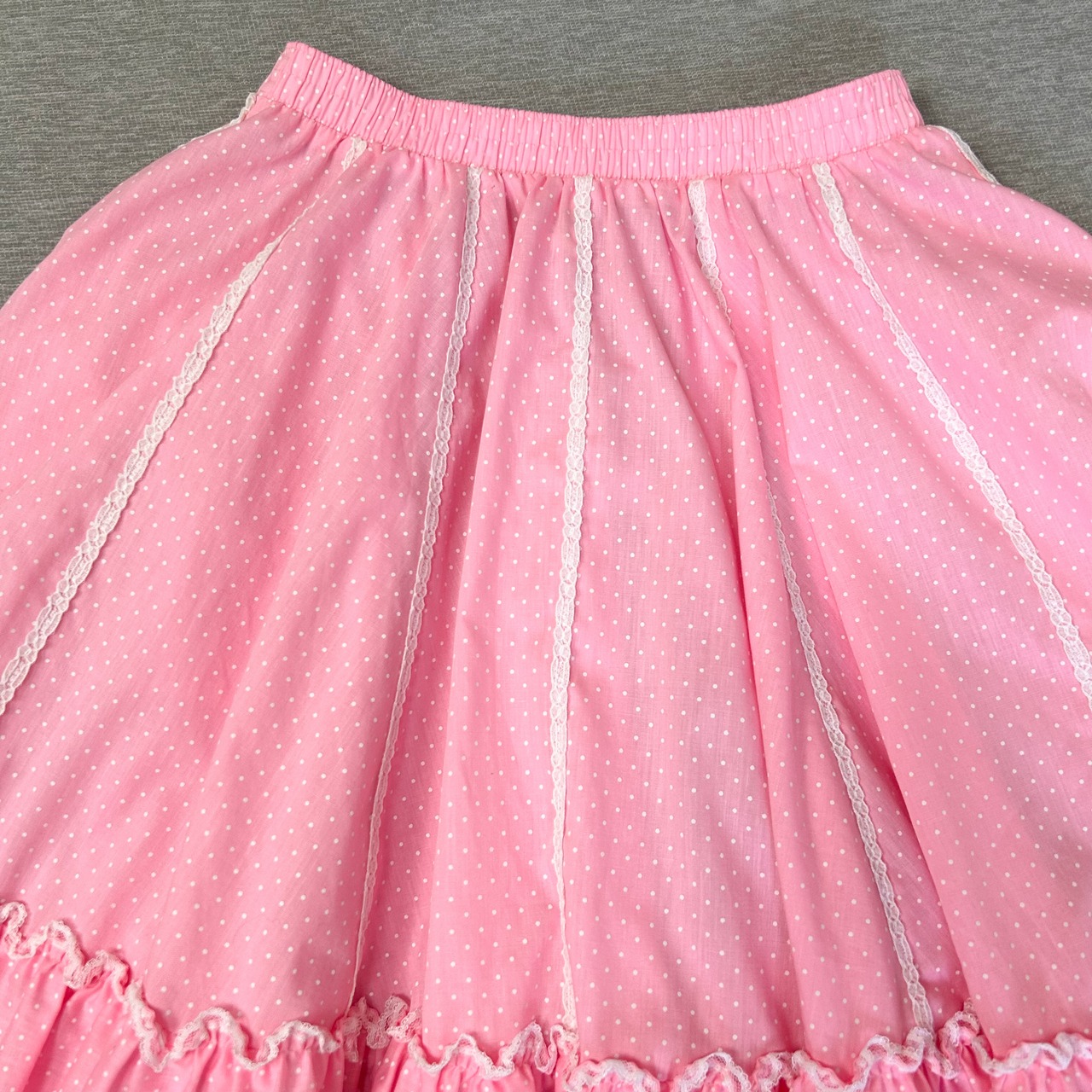 70s 80s ビンテージ USA製 レース 裾フリル ドット柄 フレアスカート