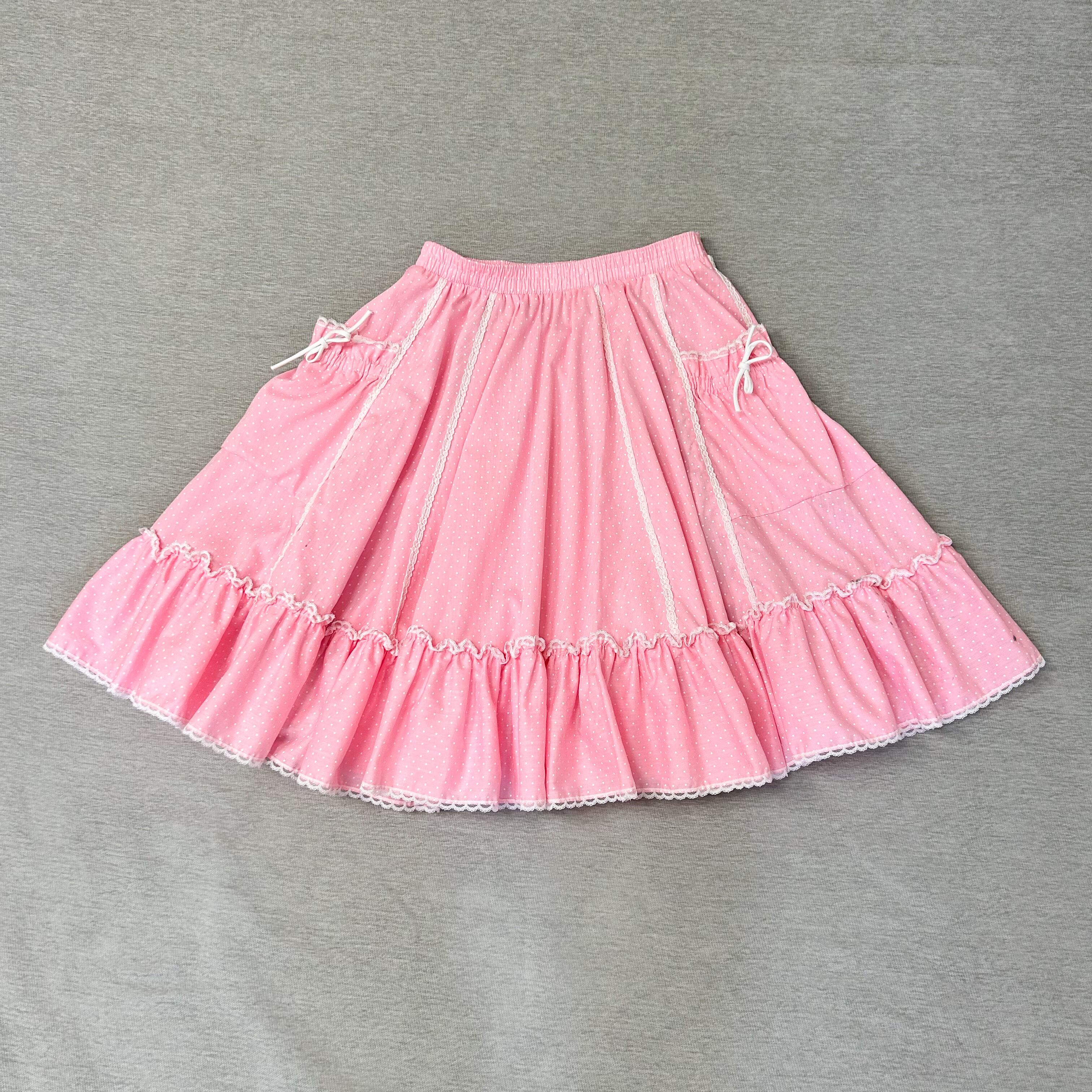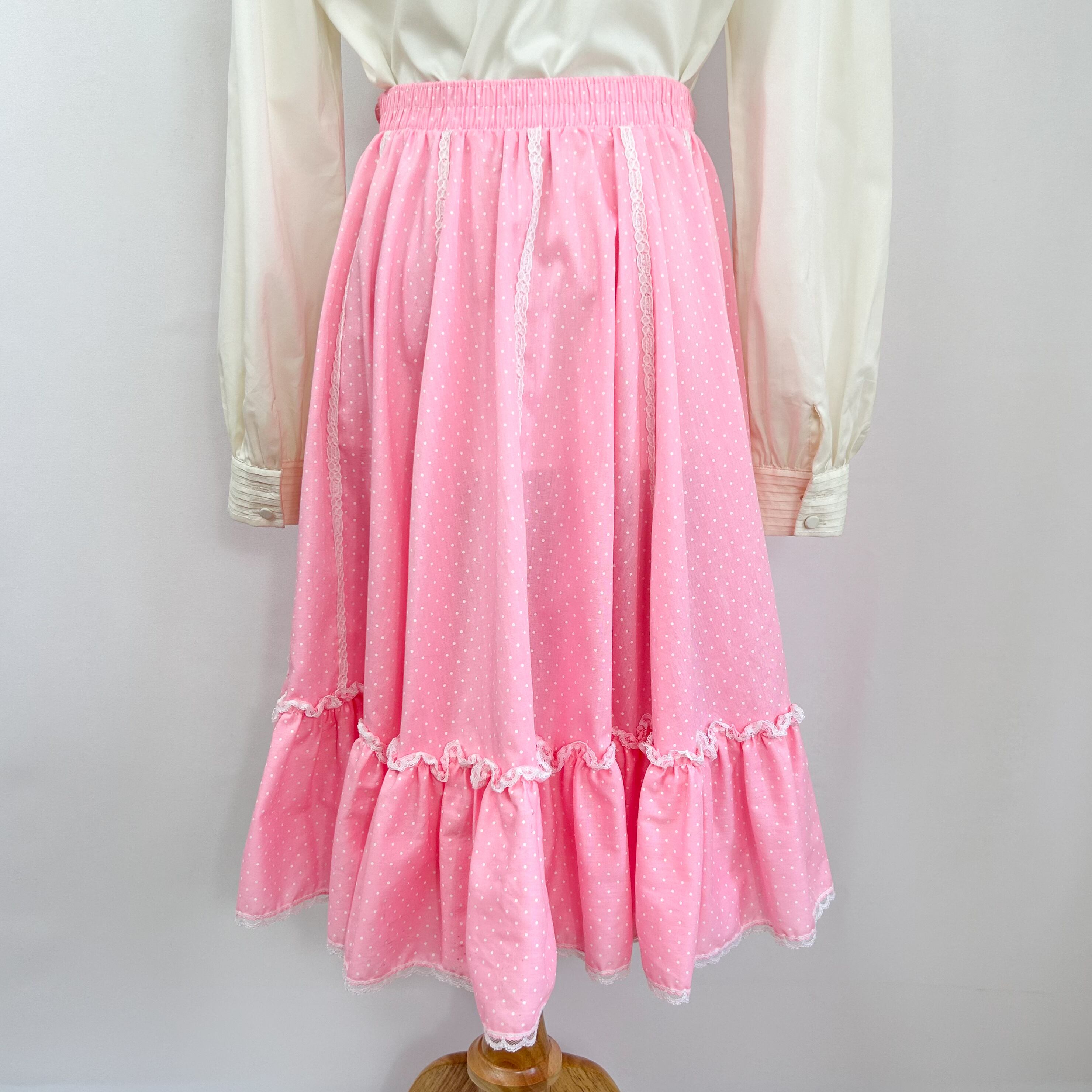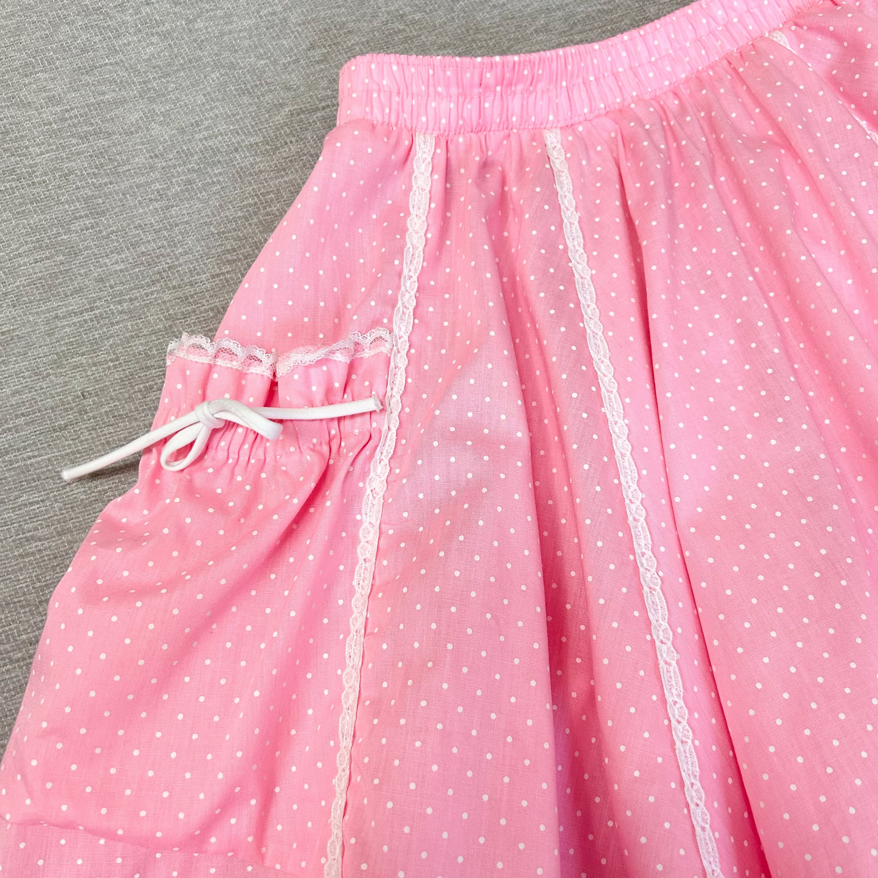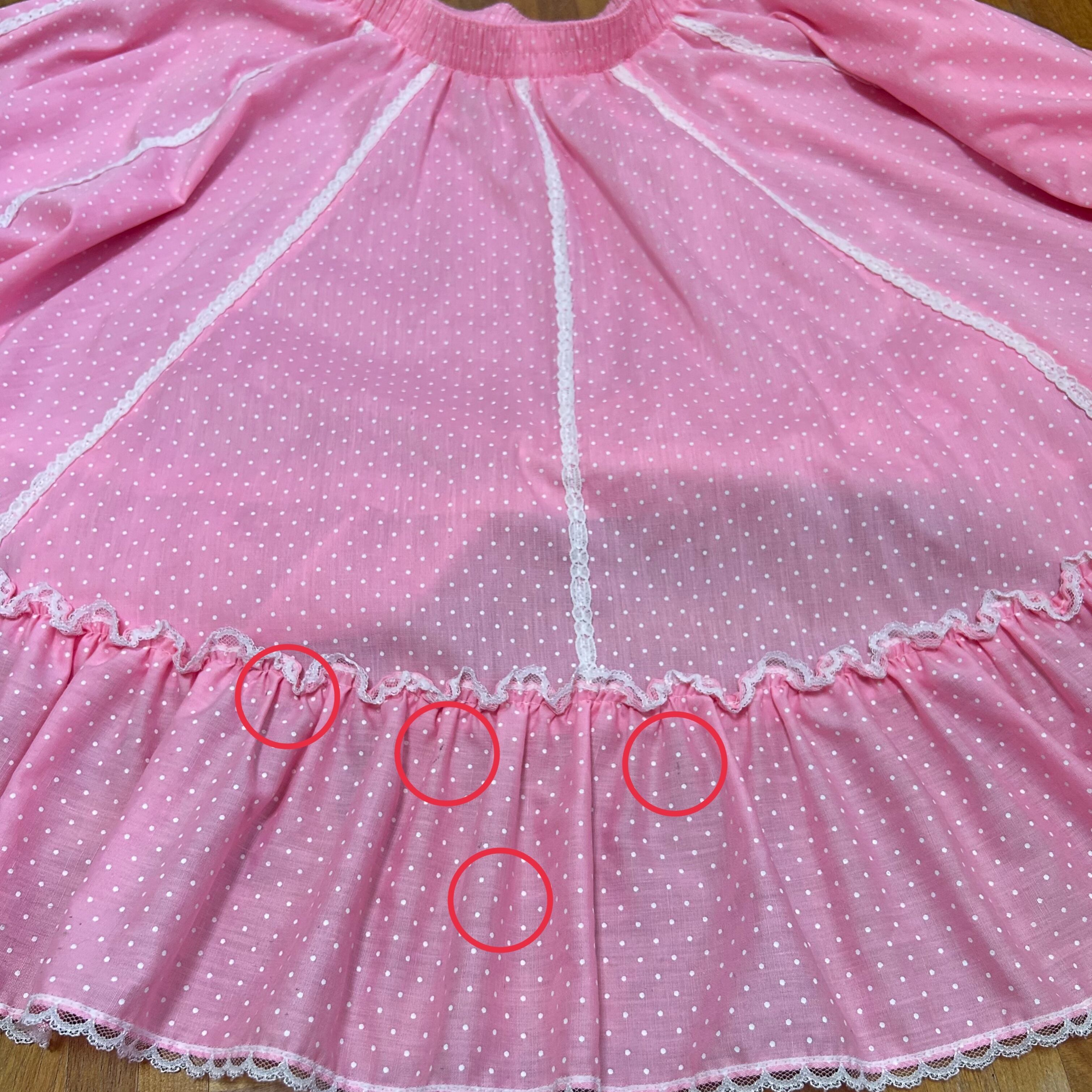 70s 80s ビンテージ USA製 レース 裾フリル ドット柄 フレアスカート