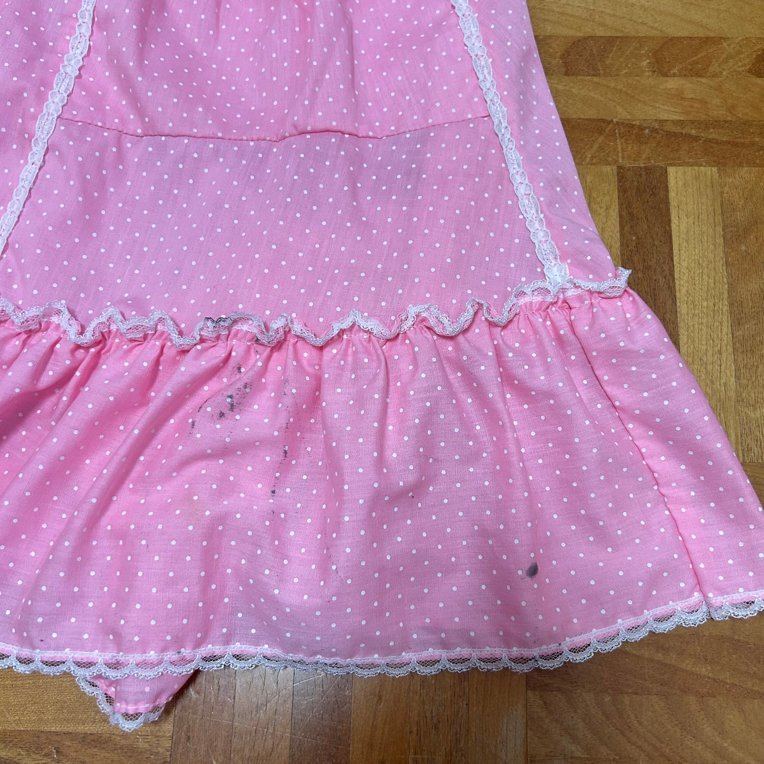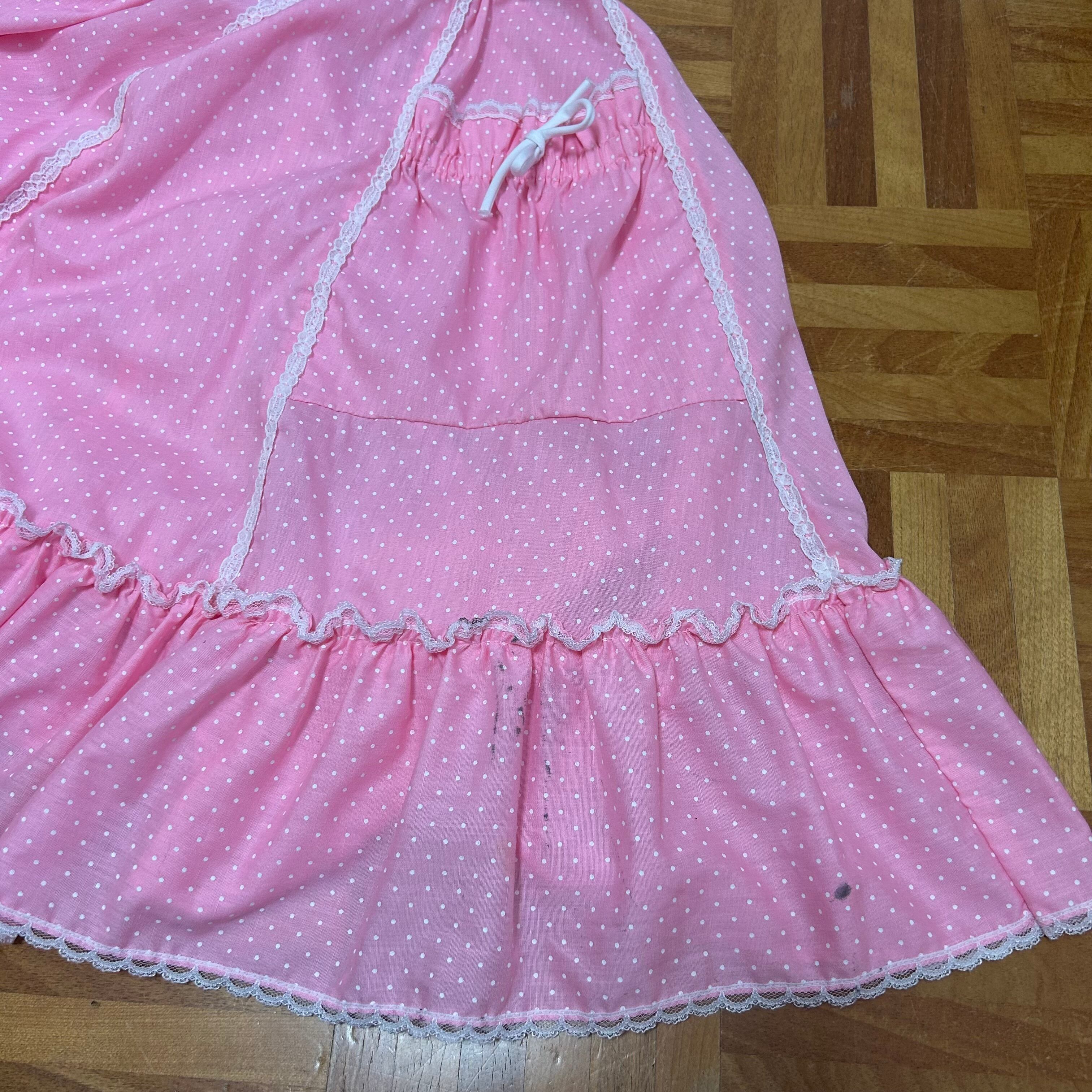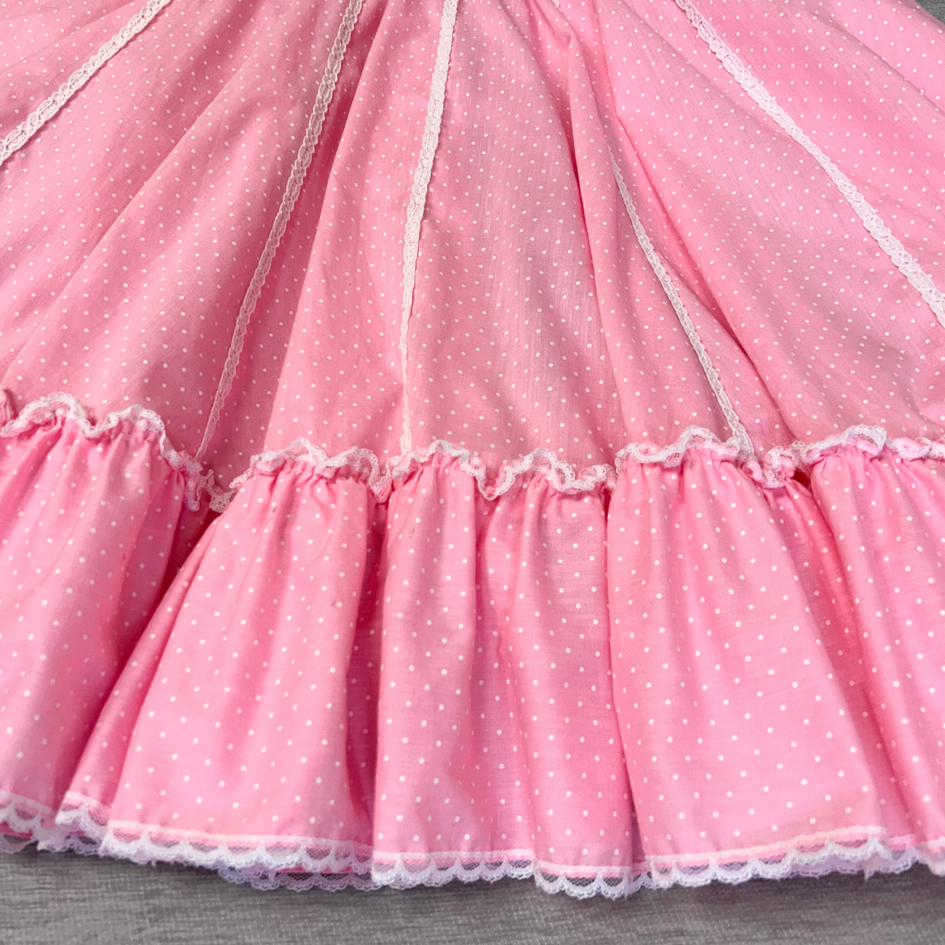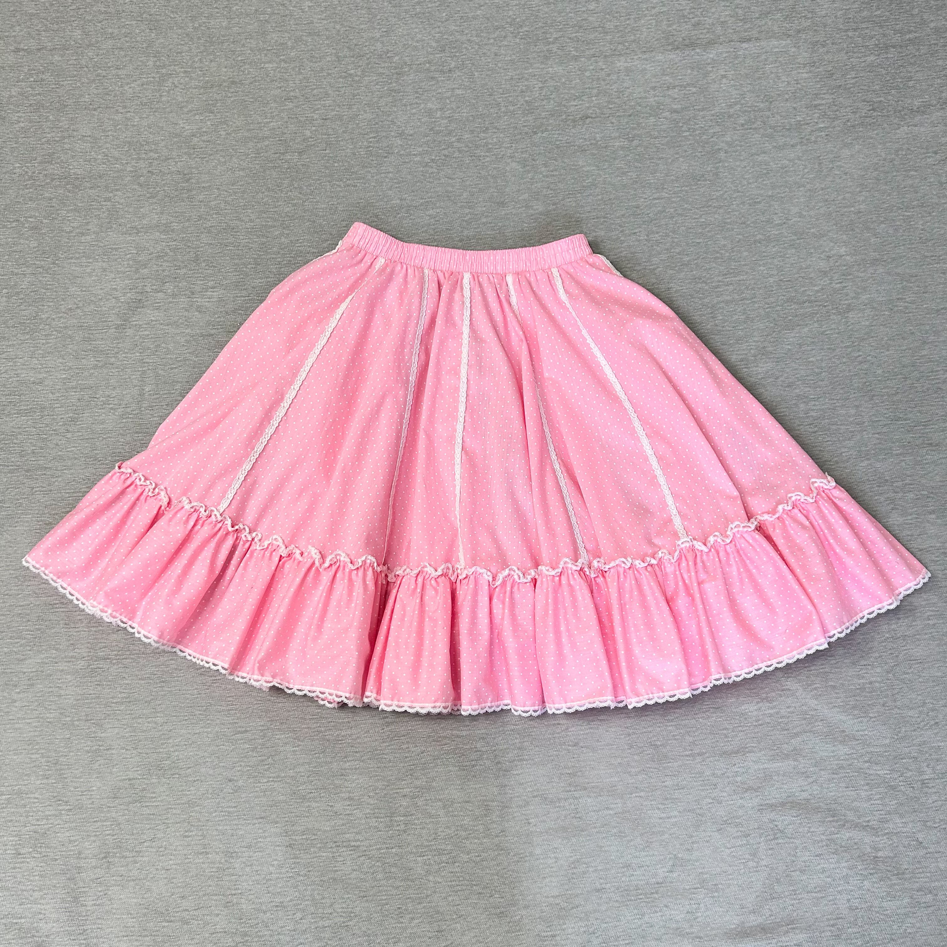 70s 80s ビンテージ USA製 レース 裾フリル ドット柄 フレアスカート
