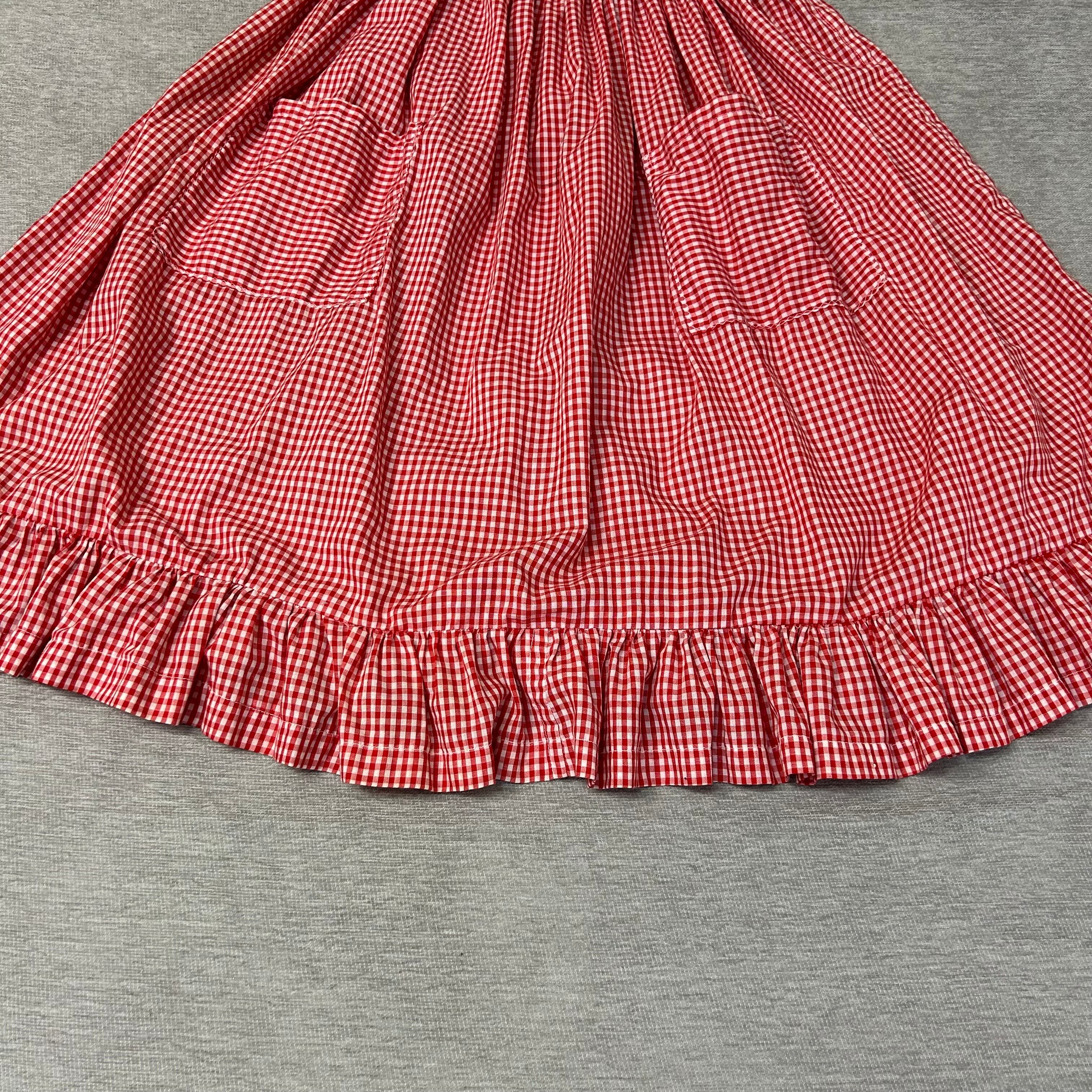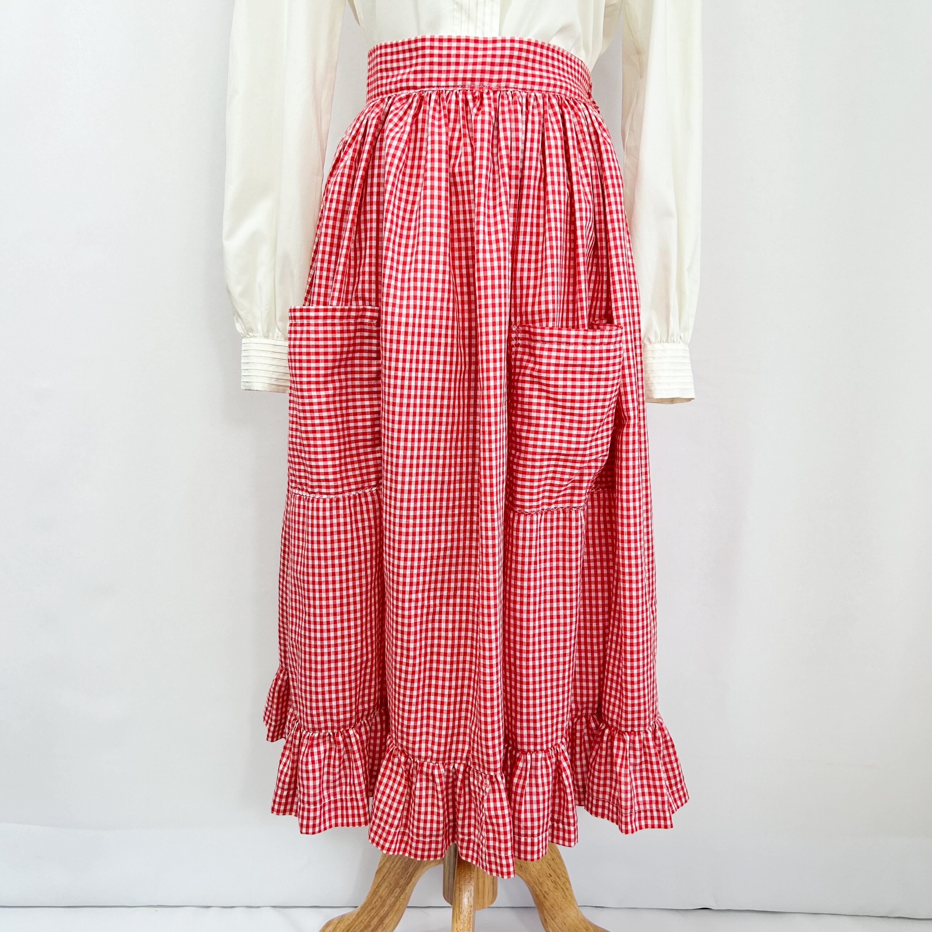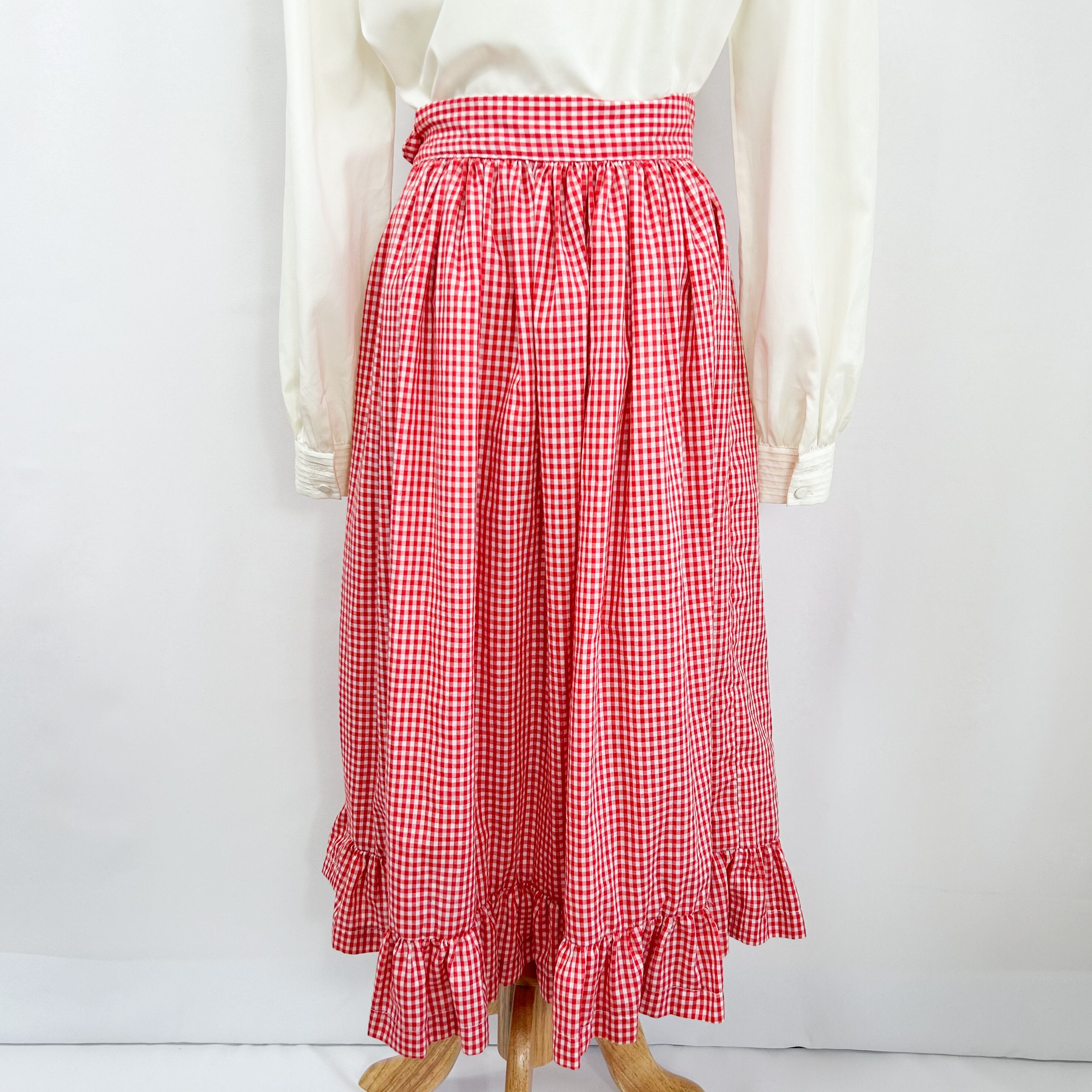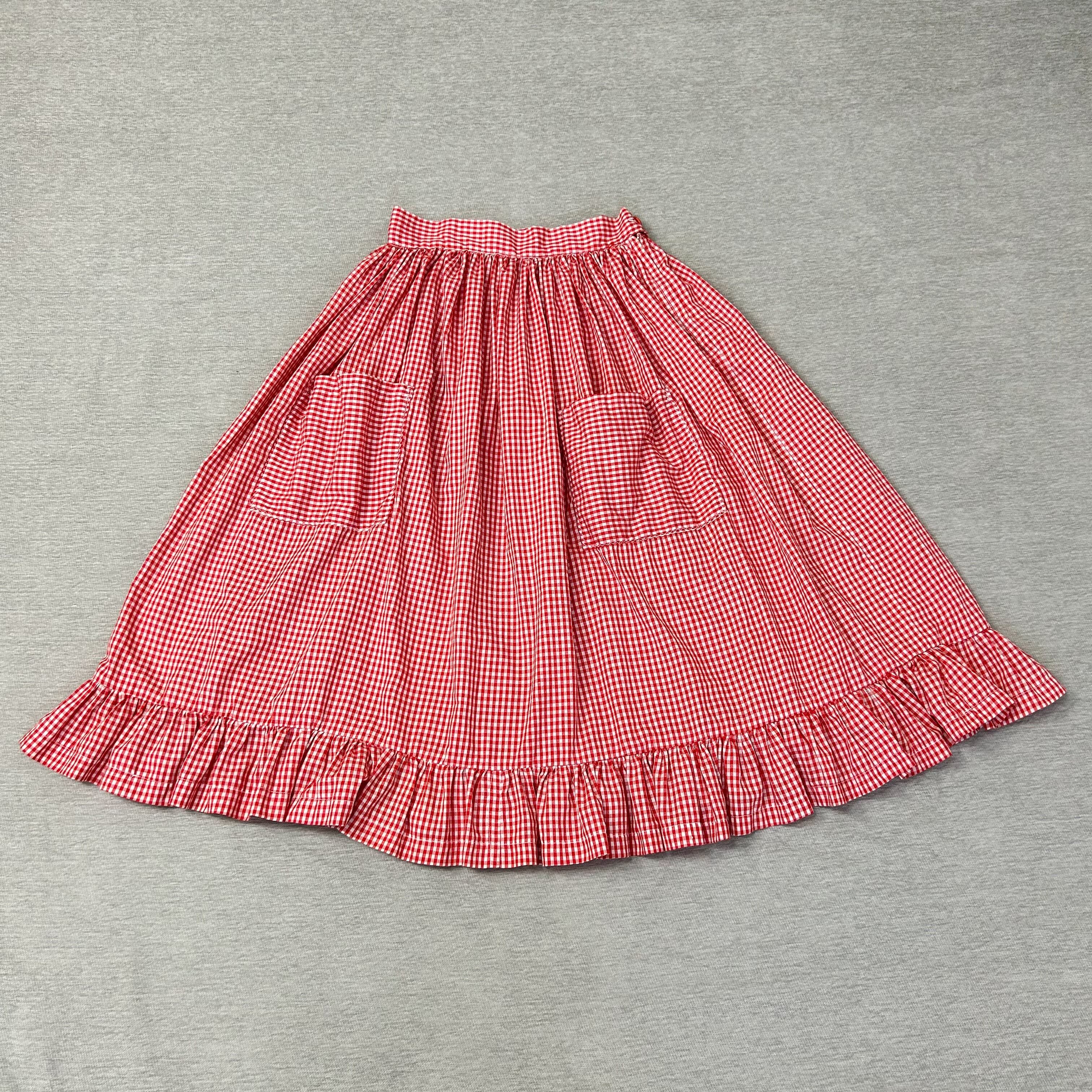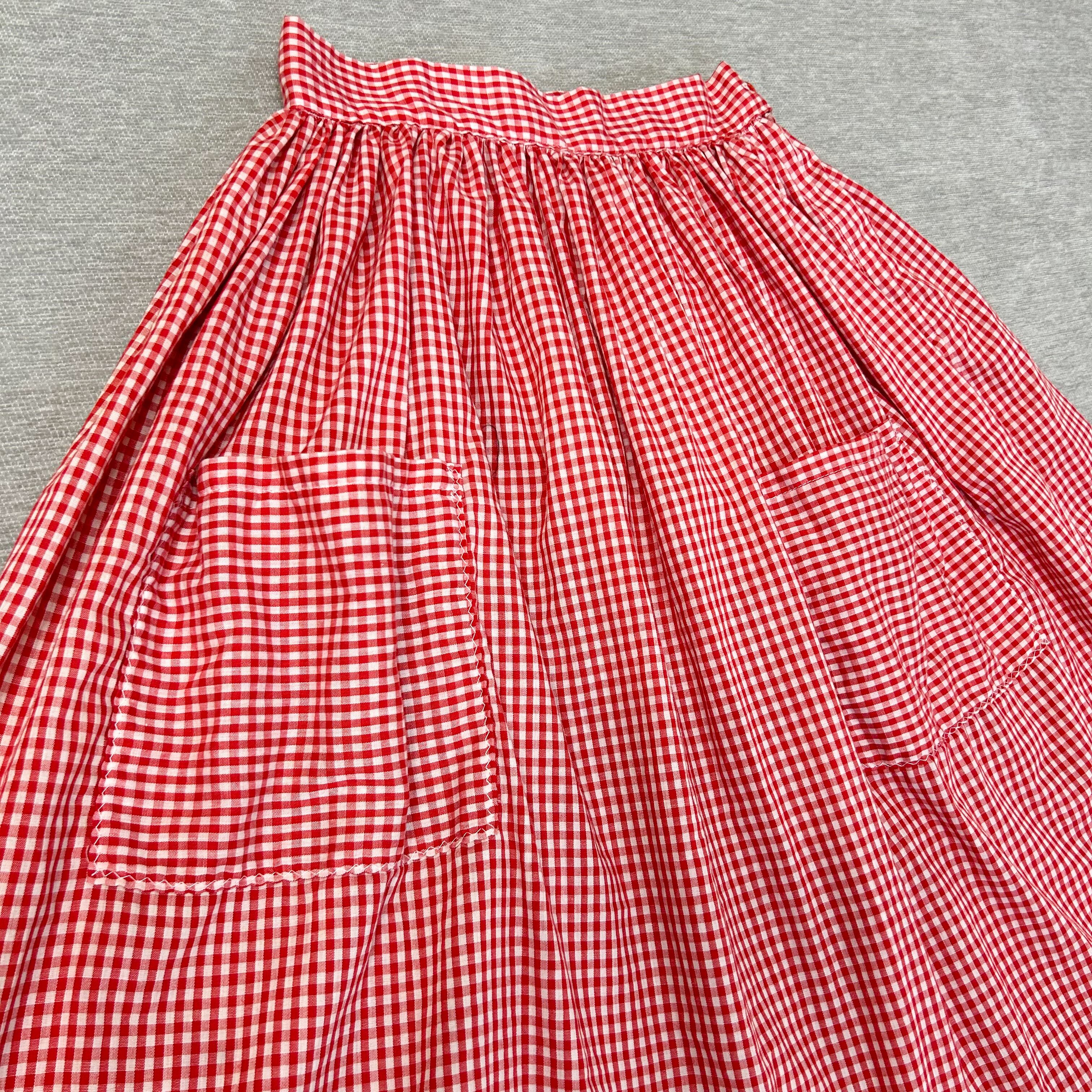 50s 60s ビンテージ USA製 裾フリル ギンガムチェック ロング丈 フレアスカート