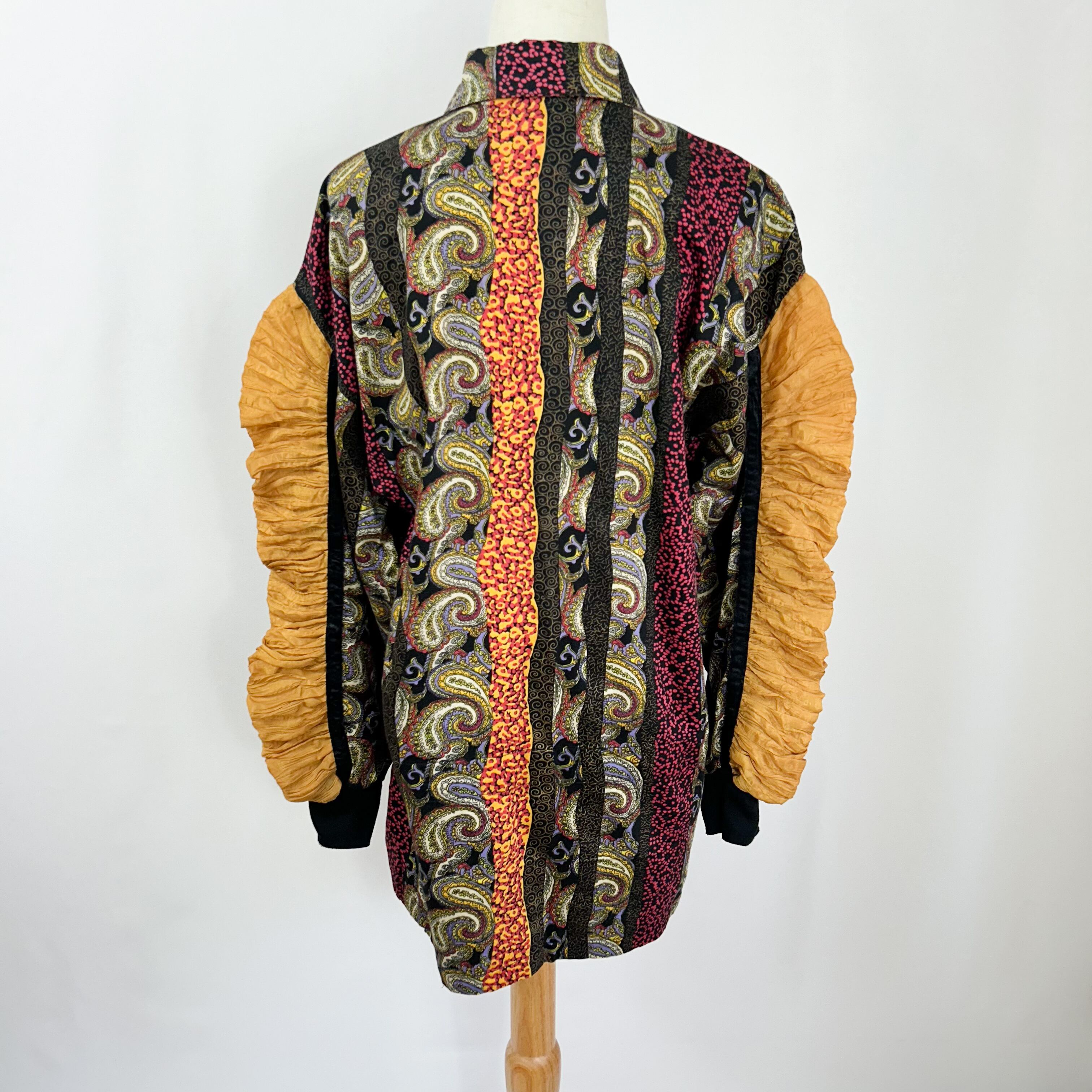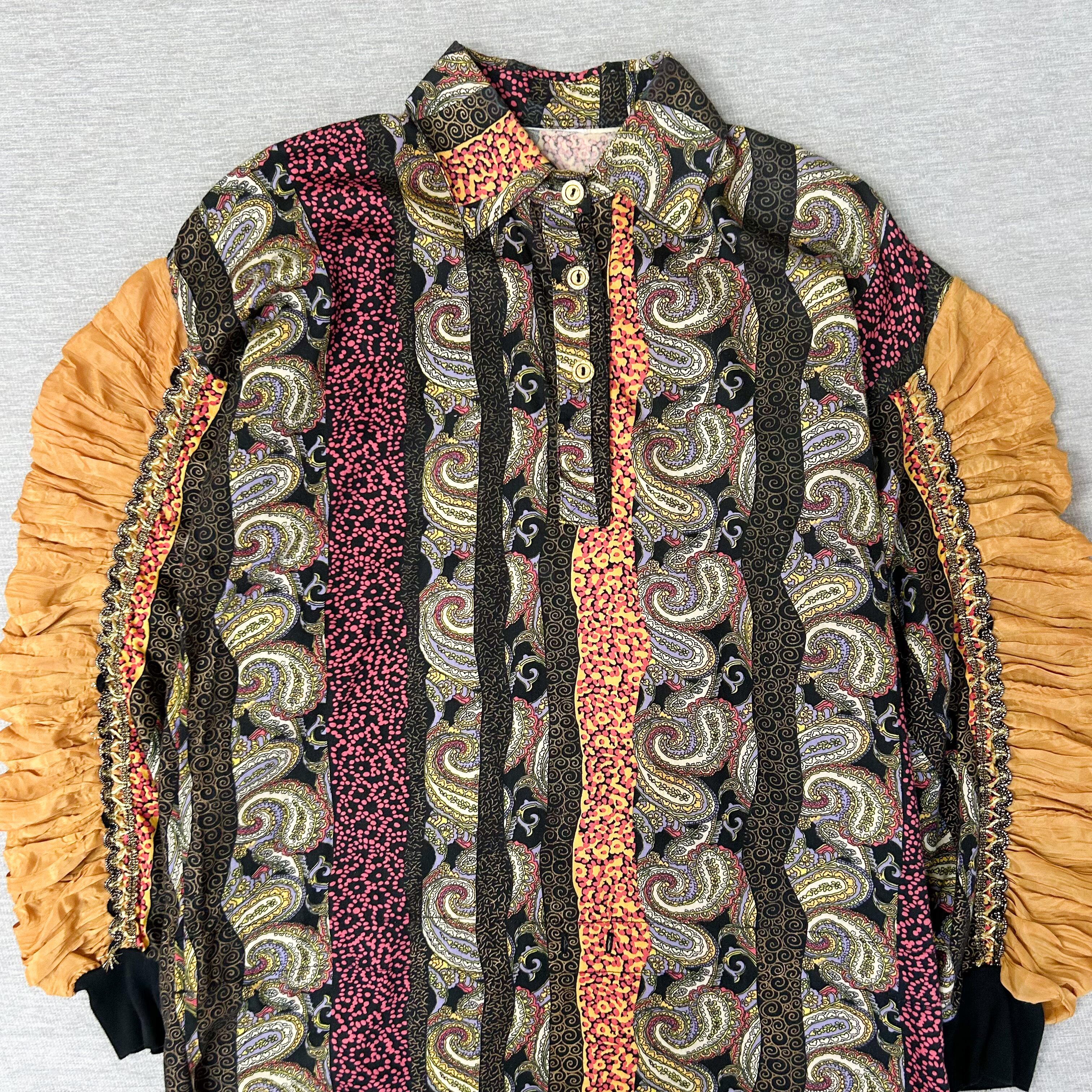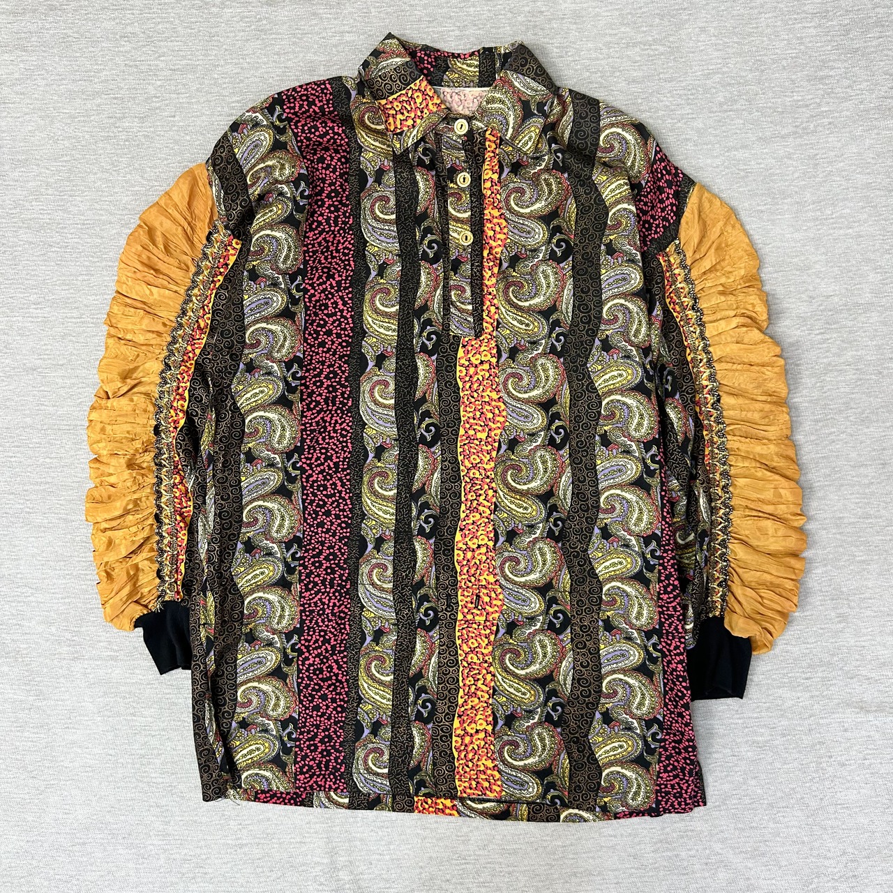 ペイズリー柄 総柄 ハーフボタン シャーリング デザイン袖 ブラウス トップス