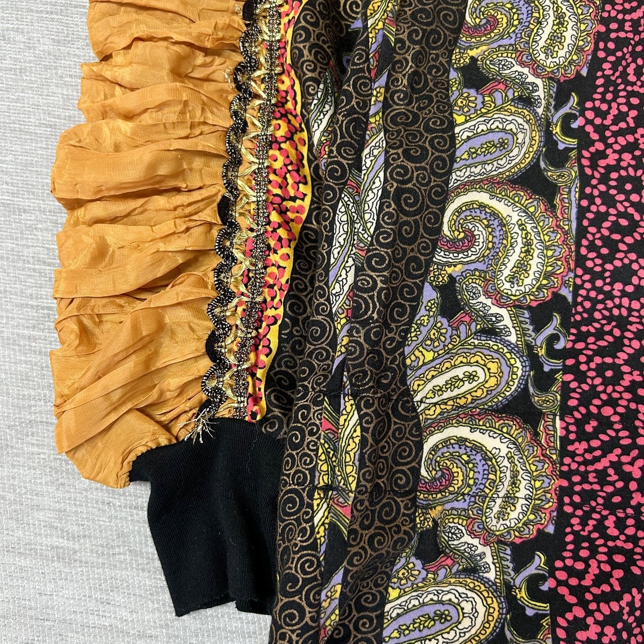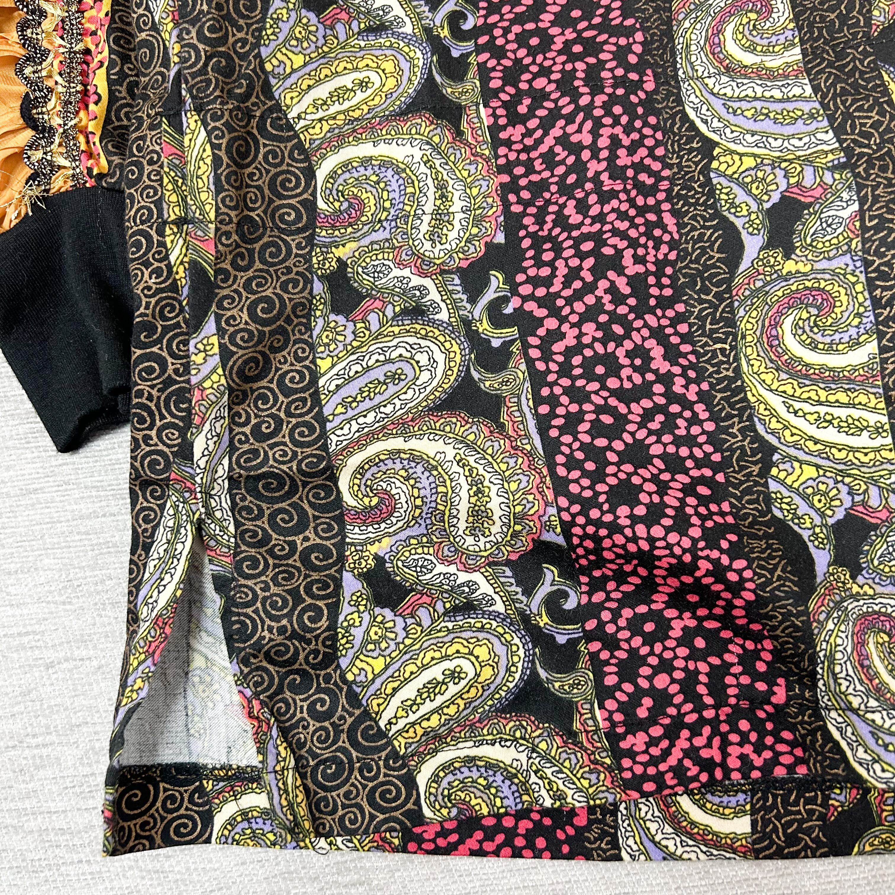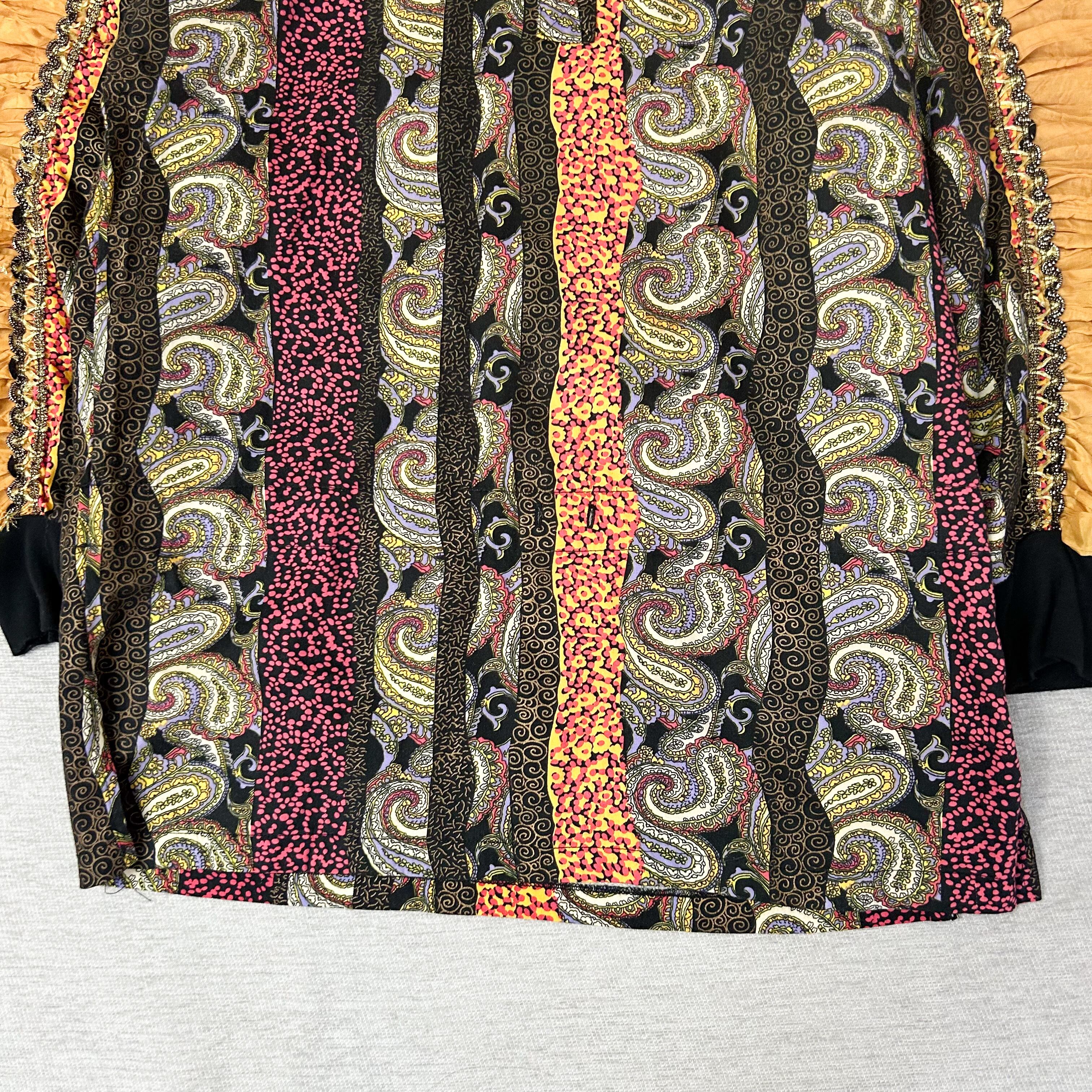 ペイズリー柄 総柄 ハーフボタン シャーリング デザイン袖 ブラウス トップス