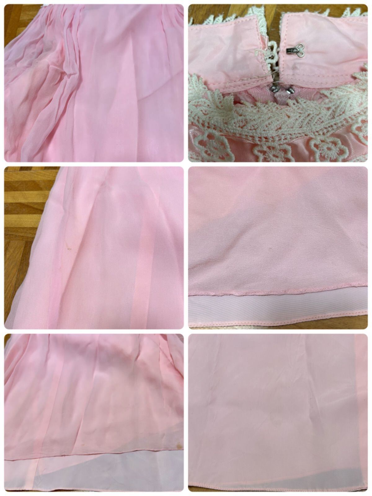 首元ホック片方無し。左右袖先ボタン1箇所無し。スカートバック裾に3㎜程度のダメージあり。