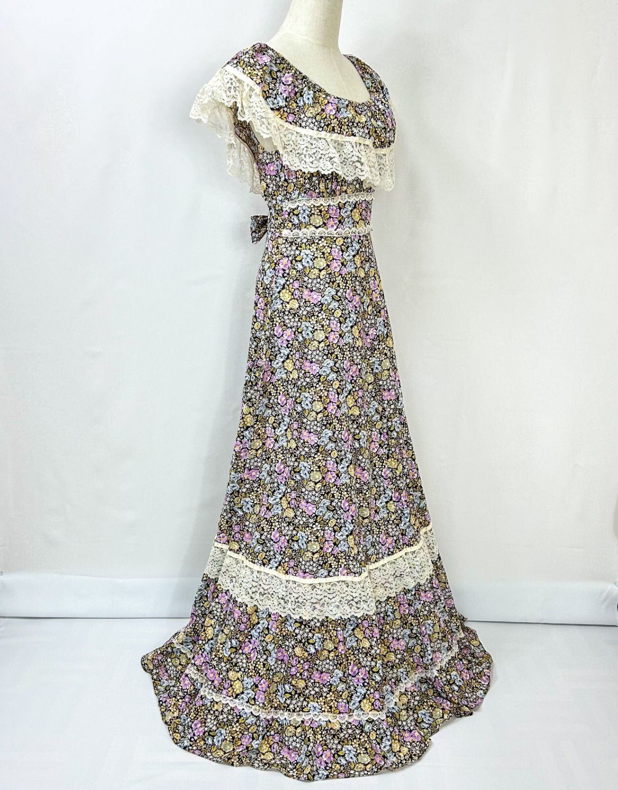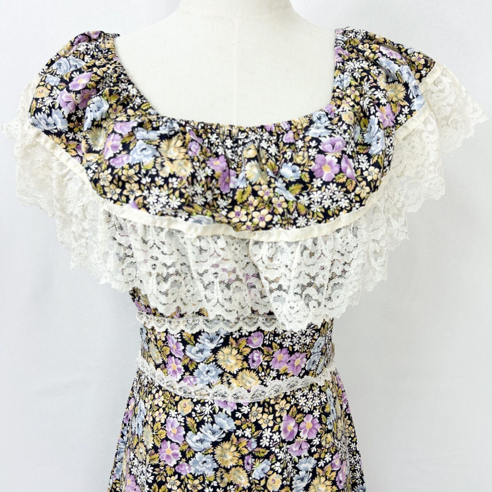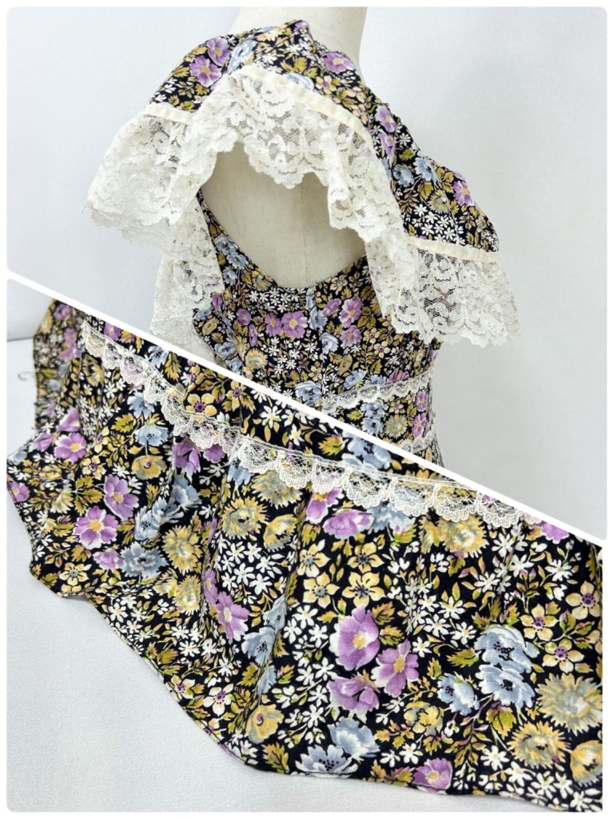 ヴィンテージ USA製 レース 花柄 Montgomery Ward ラバティンカラー フレアワンピースドレス