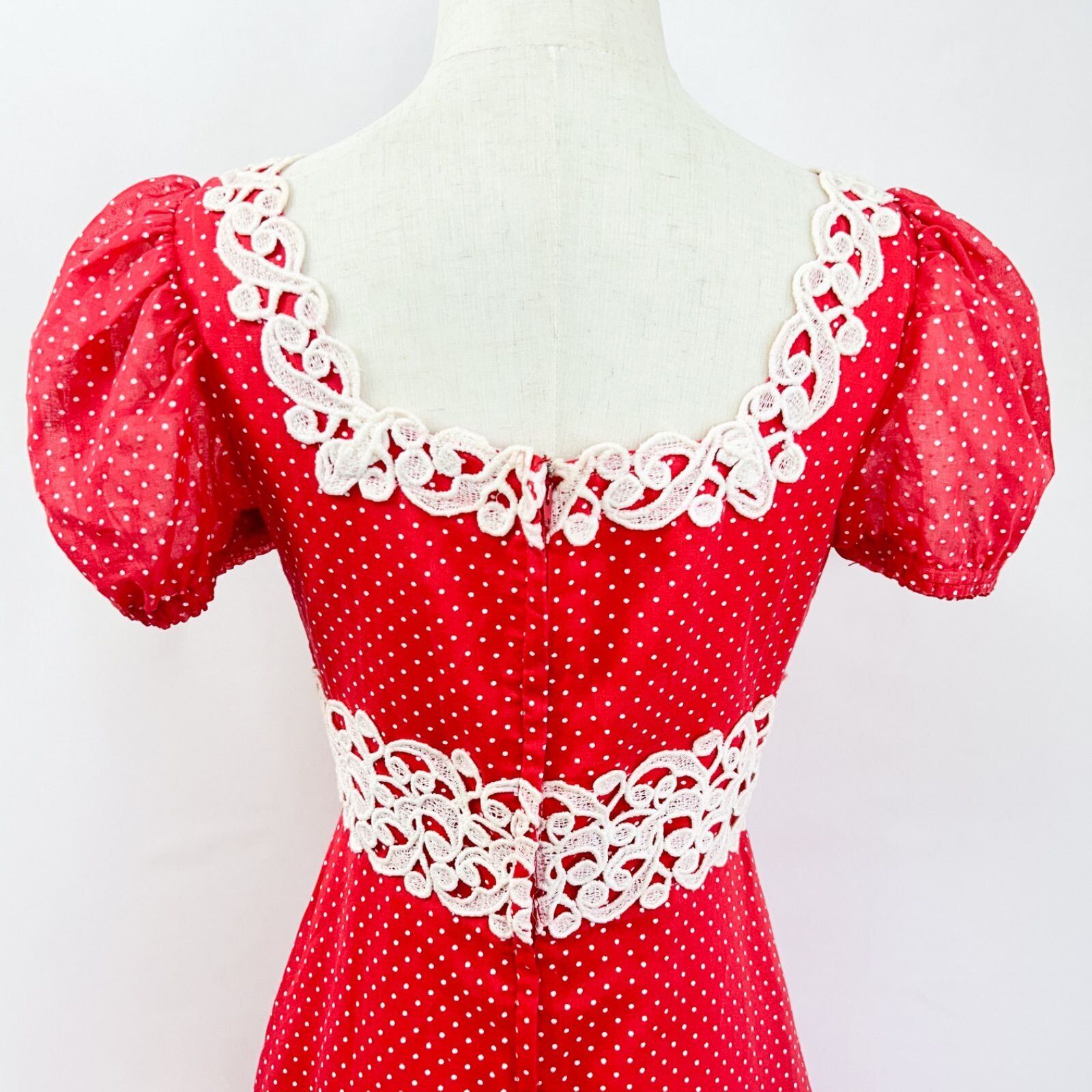 ヴィンテージ 60s 70s USA製 ユニオンメイド レース ドット柄 半袖 ロングフレアワンピースドレス