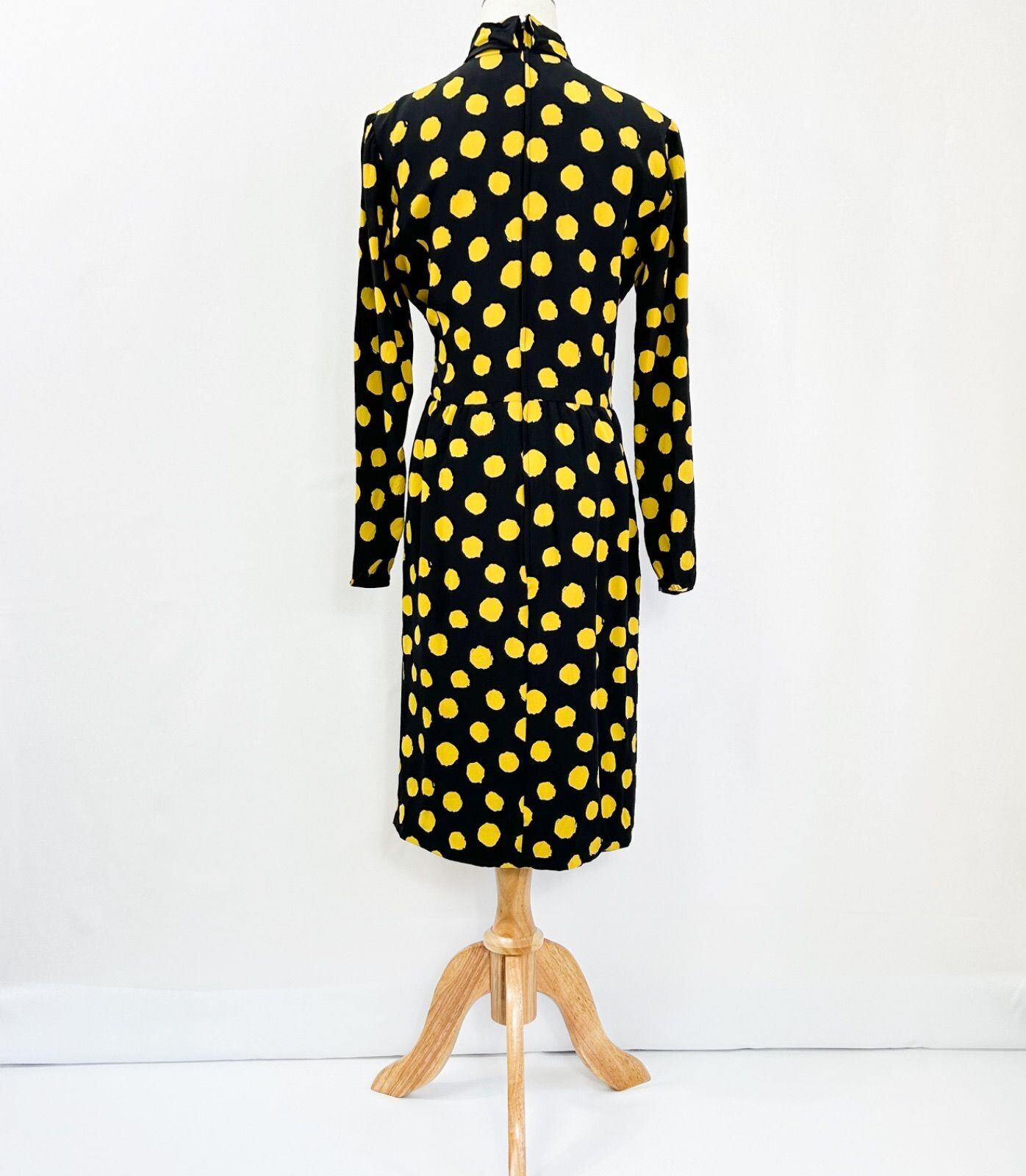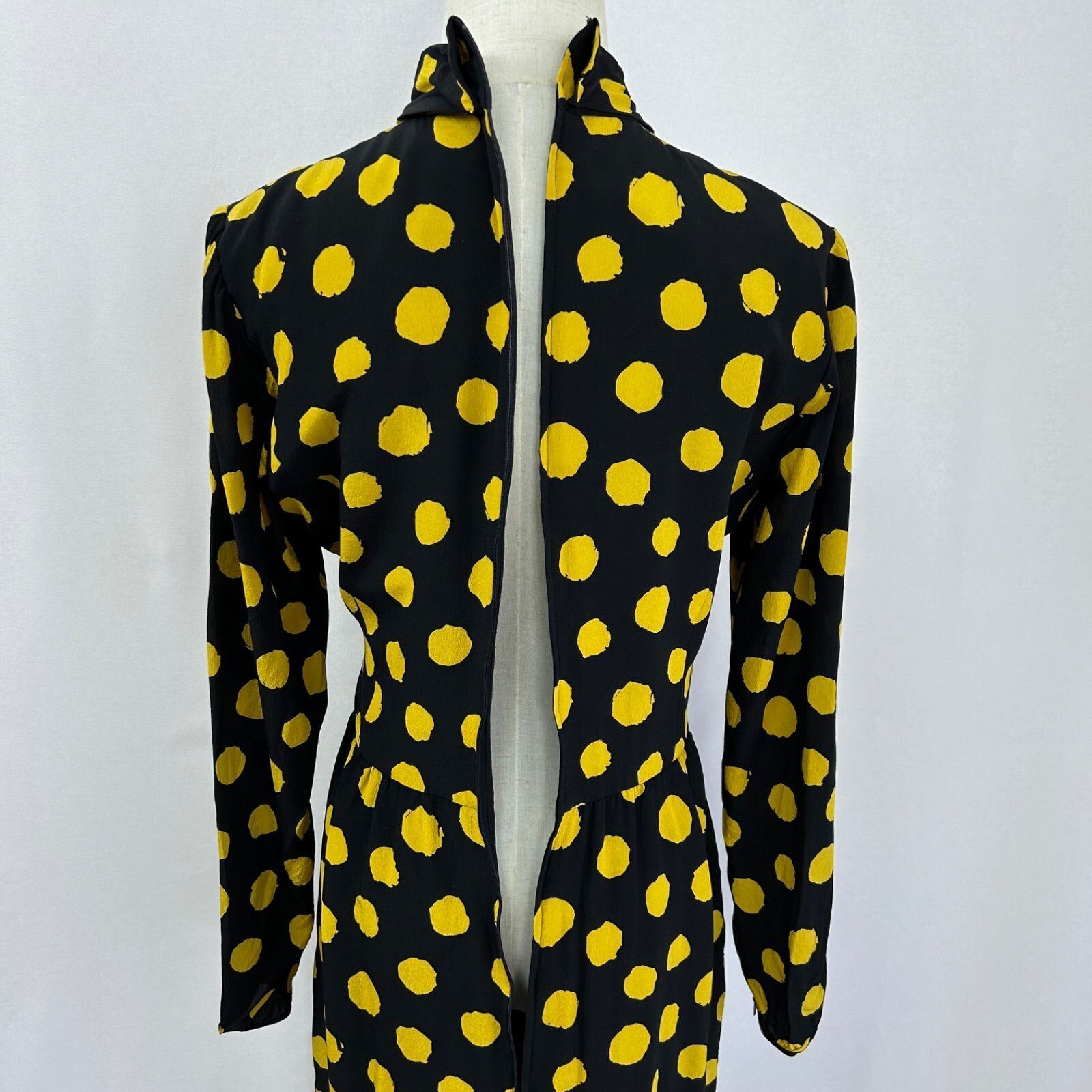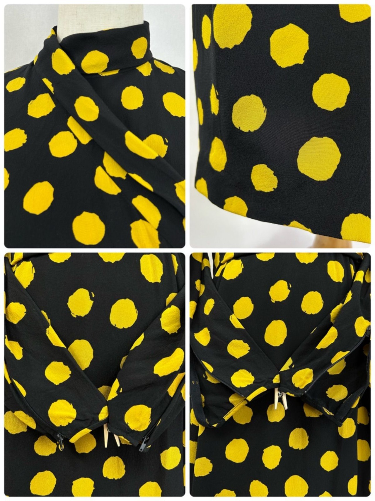 イタリア製 ungaro parallele paris ウンガロパラレルパリ 長袖 膝下丈 ドット柄 シルク カシュクール ワンピース